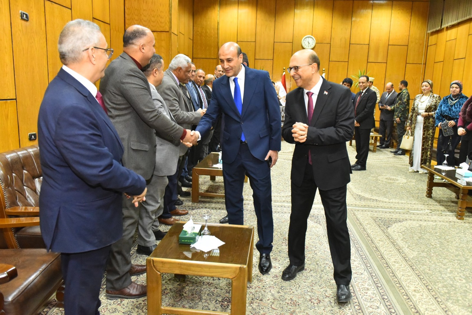 من جانبه رحب الدكتور أحمد المنشاوي بمحافظ أسيوط، مقدمًا له التهنئة بمناسبة توليه مهام منصبه، ومتمنيًا له دوام التوفيق في استكمال مسيرة التنمية التي تشهدها المحافظة مؤكدًا أن ما يجمع الجامعة والمحافظة لا يقتصر على التعاون المؤسسي، بل يمتد إلى شراكة حقيقية تقوم على العمل بروح الفريق، مشيرًا إلى أن الجامعة تضع كامل إمكاناتها العلمية والبحثية والبشرية في خدمة قضايا التنمية وتحسين جودة الحياة للمواطنين.