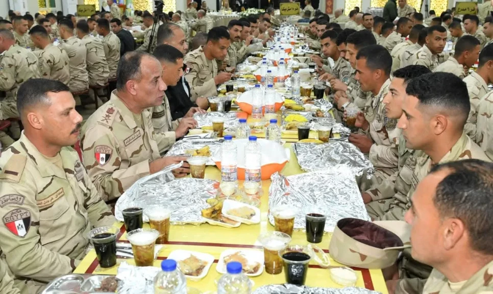 فى إطار حرص القيادة العامة للقوات المسلحة على التواصل المستمر مع رجال القوات المسلحة فى مختلف الوحدات والتشكيلات شارك الفريق أشرف سالم زاهر القائد العام للقوات المسلحة وزير الدفاع والإنتاج الحربى عدداً من مقاتلى الجيش الثانى الميدانى وكلية الضباط الإحتياط ومعهد ضباط الصف المعلمين تناول وجبة الإفطار ، وذلك بحضور الفريق أحمد خليفة رئيس أركان حرب القوات المسلحة وقادة الأفرع الرئيسية وعدد من قادة القوات المسلحة .