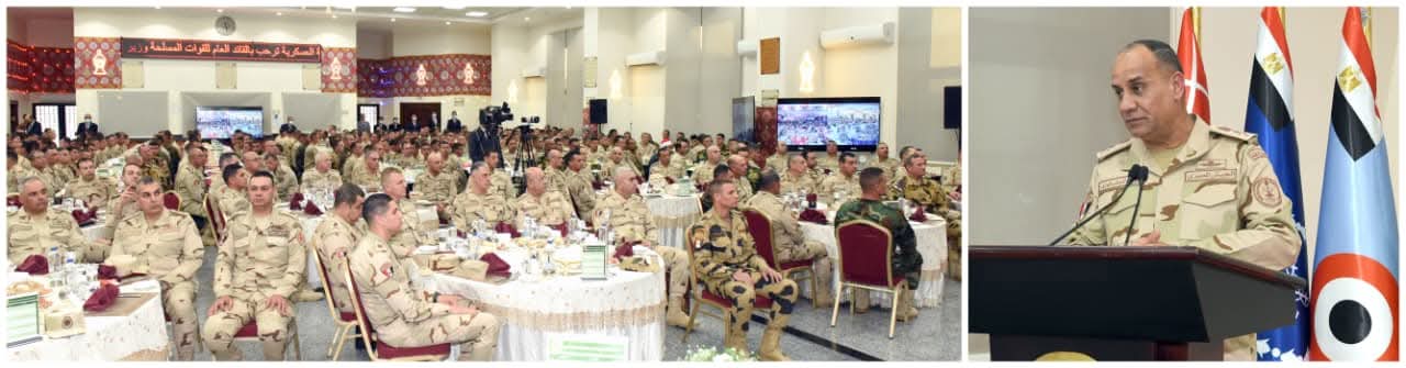 كما شارك عدداً من مقاتلى المنطقة المركزية العسكرية وقوات حرس الحدود والمظلات والصاعقة تناول وجبة الإفطار ، ونقل الفريق أشرف سالم زاهر تحيات وتقدير الرئيس عبد الفتاح السيسى رئيس الجمهورية القائد الأعلى للقوات المسلحة للمقاتلين ، مؤكداً على أهمية الإهتمام بالتدريب المستمر والحفاظ على الروح المعنوية العالية ليظل رجال القوات المسلحة فى أعلى درجات الجاهزية القتالية للحفاظ على أمن الوطن وصون مقدساته ، مشيراً إلى حرص القيادة العامة للقوات المسلحة على توفير كافة الإمكانيات للإهتمام بالفرد المقاتل بإعتباره الركيزة الأساسية لقواتنا المسلحة ، كما أوصى رجال القوات المسلحة بمواصلة البحث والإطلاع للإرتقاء بمستوى الوعى ليكونوا على دراية تامة بكل ما يدور حولهم من أحداث فى ظل ما تموج به المنطقة من متغيرات حادة ومتسارعة ومدى إرتباط ذلك بالأمن القومى المصرى .
