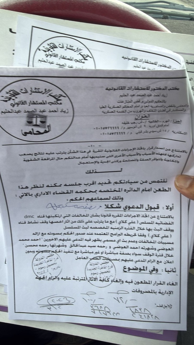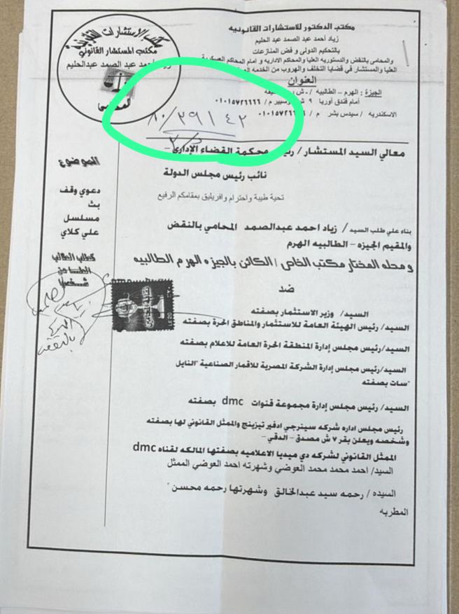 واختصمت الدعوى عددًا من المسؤولين والجهات المعنية بالإنتاج والبث، من بينهم وزير الاستثمار بصفته، ورئيس الهيئة العامة للاستثمار والمناطق الحرة، ورئيس مجلس إدارة المنطقة الحرة الإعلامية، إلى جانب مسؤولي الشركة المنتجة ومجموعة قنوات dmc.