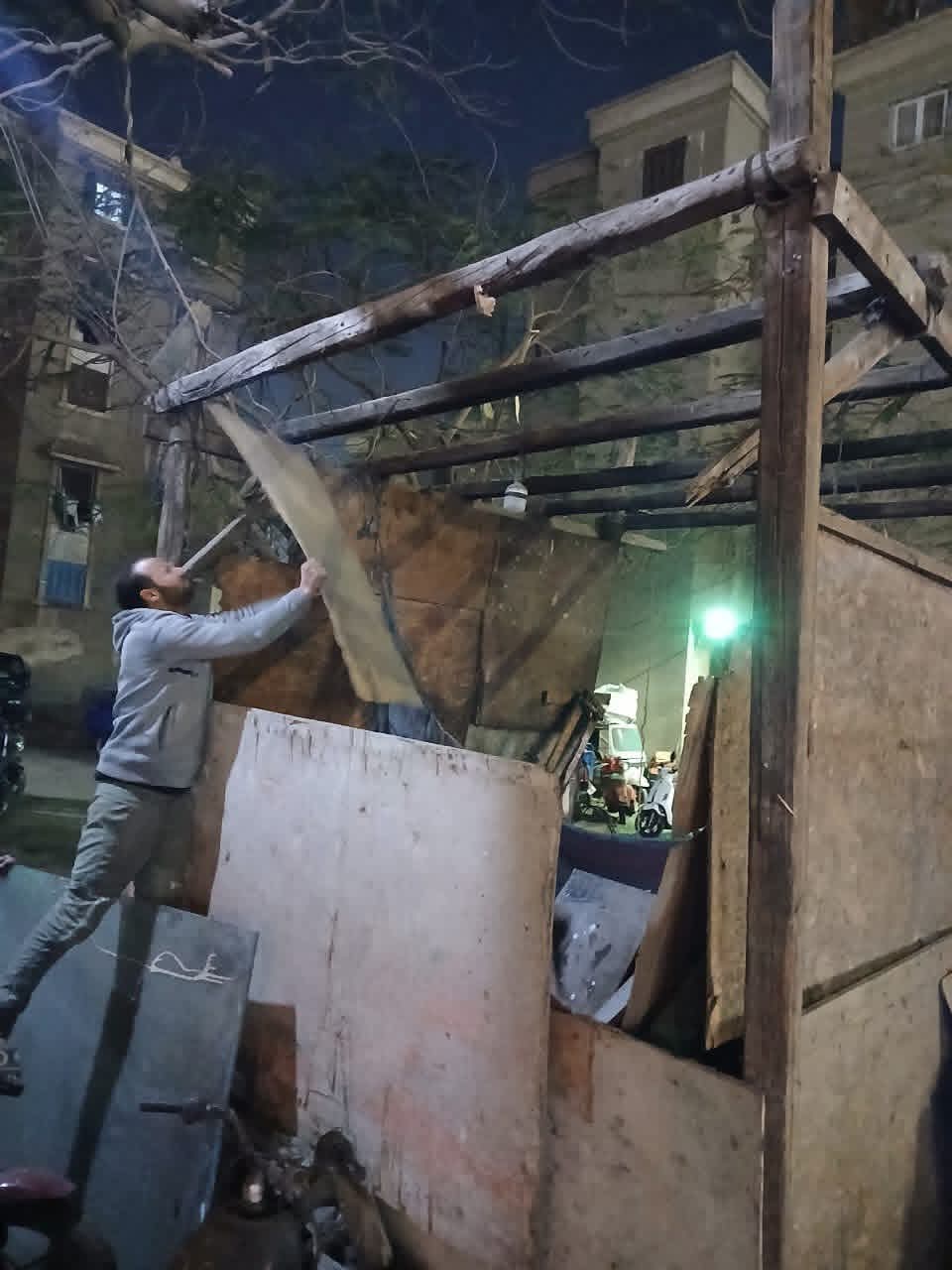 في ضوء توجيهات الدكتور ابراهيم صابر محافظ القاهرة بضرورة تحسين مستوى الخدمات المقدمة للمواطنين وإعادة الانضباط للشارع المصري تابع الدكتور أحمد العدل أعمال إزالة مخالفة أثناء الحملة الليلية بمنطقة سوزان مبارك بحي منشأة ناصر ، تمثلت في قيام المخالف بزيادة مساحة محله التجاري باحتلال جزء من الشارع عن طريق تثبيت أعمدة حديدية وسقف صاج ، وقد تم فك لحام الجزء الإضافي واتخاذ الاجراءات القانونية ضد المخالف .