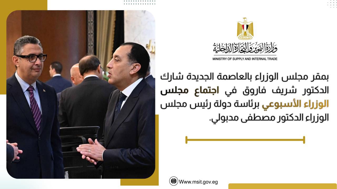 بمقر مجلس الوزراء بالعاصمة الجديدة شارك الدكتور شريف فاروق في اجتماع مجلس الوزراء الأسبوعي برئاسة دولة رئيس مجلس الوزراء الدكتور مصطفى مدبولي.
