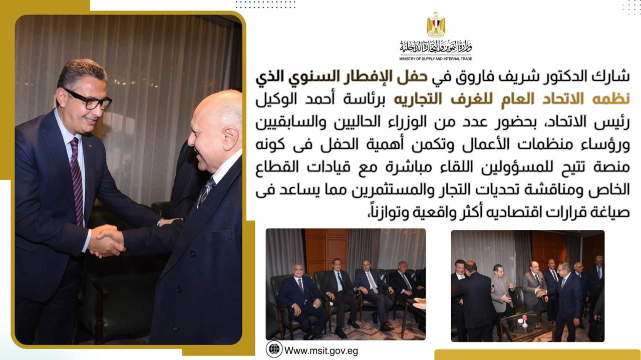 وتكمن أهمية الحفل فى كونه منصة تتيح للمسؤولين اللقاء مباشرة مع قيادات القطاع الخاص ومناقشة تحديات التجار والمستثمرين مما يساعد فى صياغة قرارات اقتصاديه أكثر واقعية وتوازناً، كما يعد جسر لتعزيز الثقة بين الحكومة والقطاع الخاص لضمان استقرار السوق المصرى.