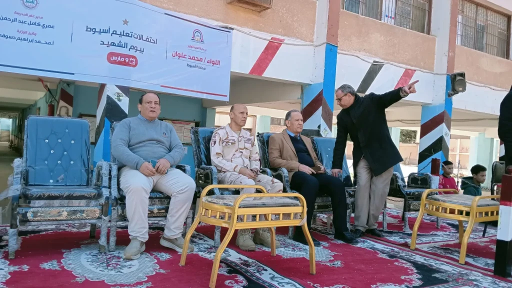 تفقد محمد ابراهيم دسوقى وكيل وزارة التربية والتعليم بأسيوط اليوم الأحد الاستعدادات النهائية للاحتفال بذكرى يوم الشهيد والذى تنظمه مديرية التربية والتعليم كل عام بمدرسة ناصر الثانوية العسكرية بمدينة أسيوط ..جاء ذلك بحضور سيد الشريف مدير عام الشئون التنفيذية بمديرية التربية والتعليم بأسيوط وايفيلين شنودة موجه عام التربية الموسيقية وعلى حمام موجه عام المسرح بمديرية التربية والتعليم وعامري كامل مدير إدارة مدرسة ناصر الثانوية بنين .