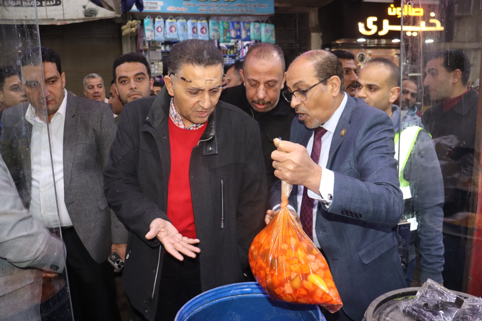 محافظ القليوبية يقود حملة رقابية بمدينة طوخ لضبط الأسواق وإعدام لحوم ومواد غذائية غير صالحة ومتابعة رفع الإشغالات