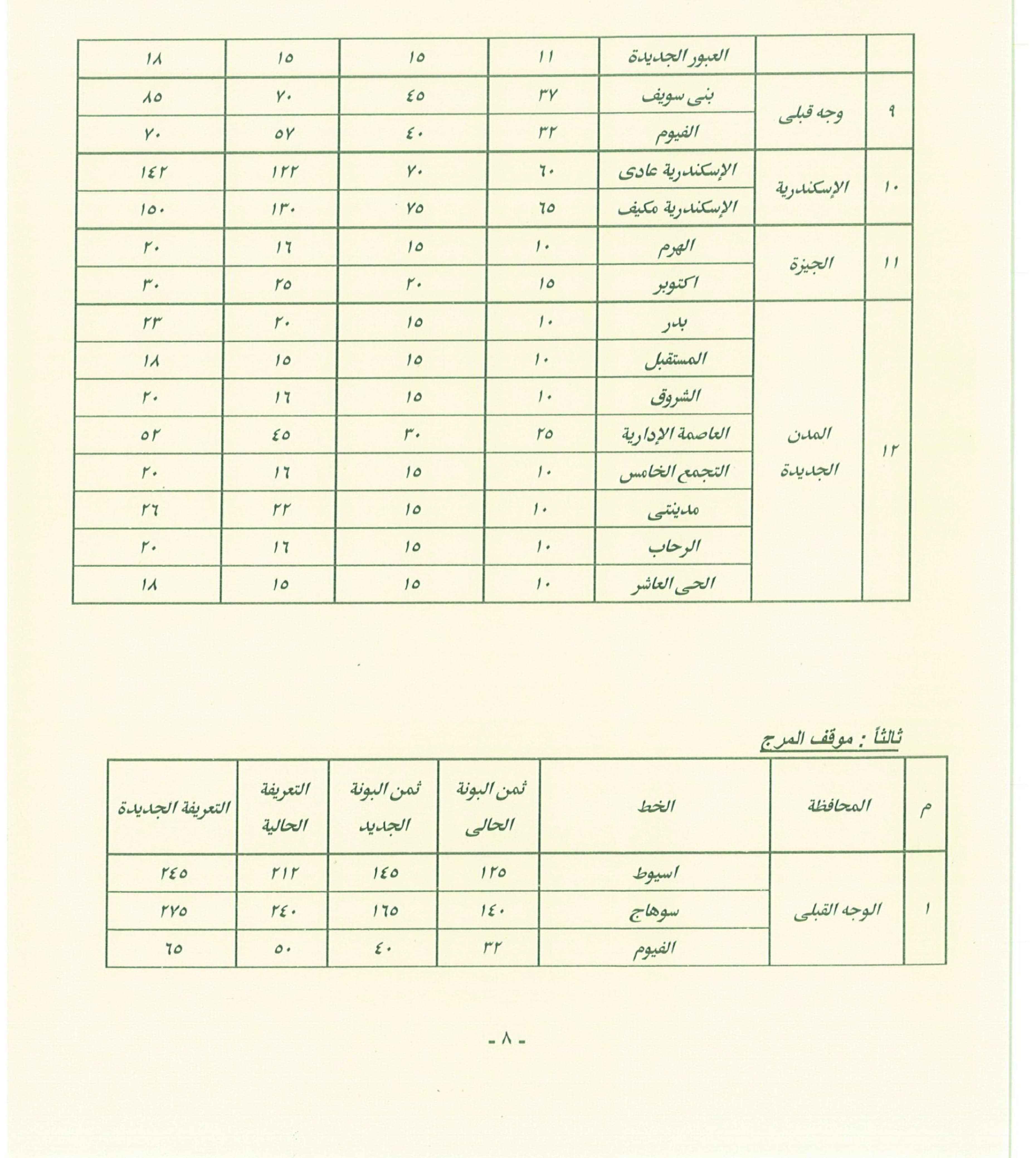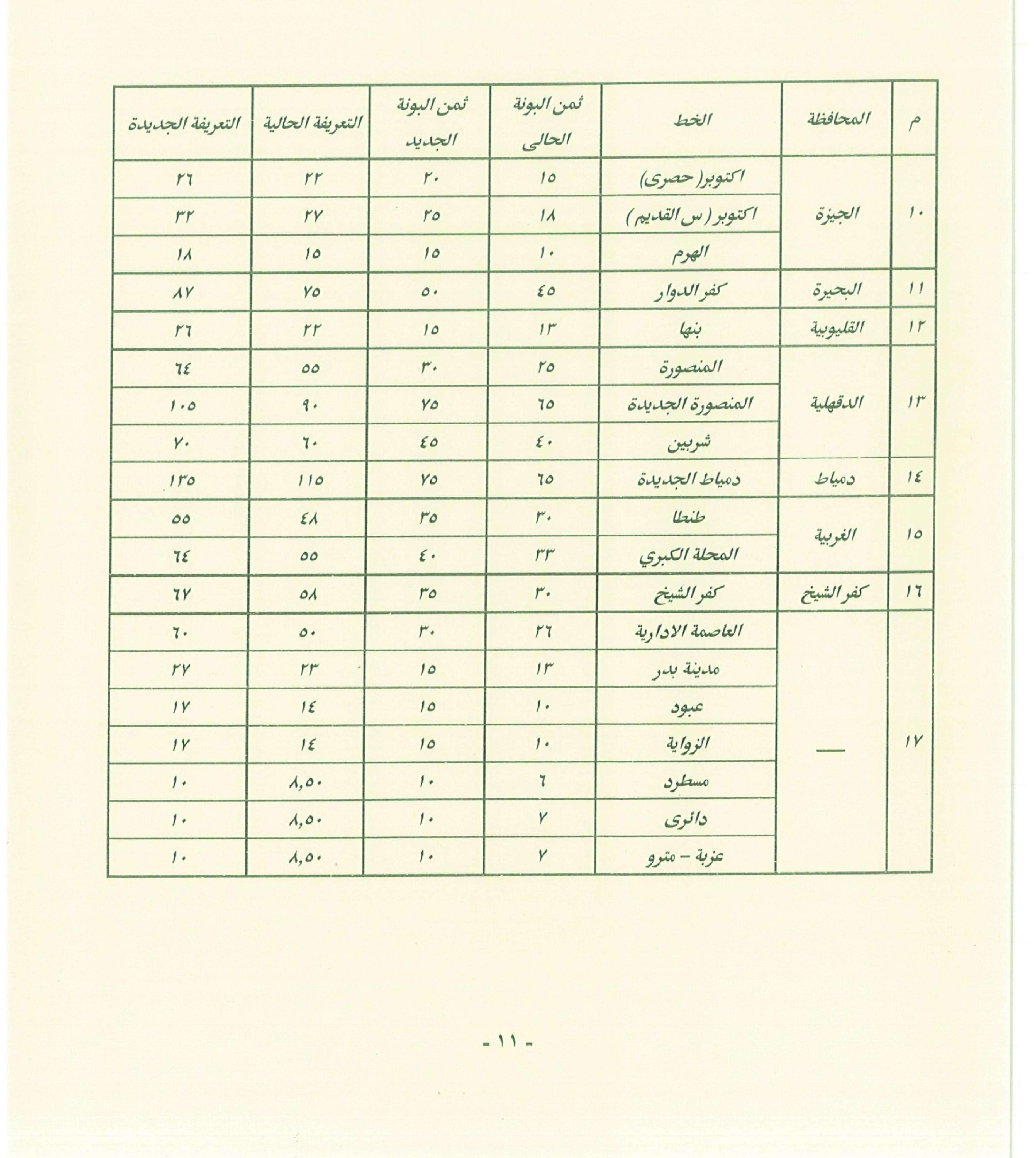 في ضوء صدور قرار تعديل أسعار بعض المنتجات البترولية وغاز تموين السيارات في ظل الظروف الاستثنائية التي تمر بها أسواق الطاقة عالميًا، أعلنت محافظة القاهرة تعديل تعريفة ركوب سيارات السرفيس، والنقل العام، والنقل الجماعي، وخطوط الأقاليم، والتاكسي الأبيض، بما يتماشى مع الزيادة الجديدة في أسعار الوقود، مع زيادة أجرة سيارات الأقاليم والسرفيس والسيارات الأجرة (التاكسي) داخل نطاق المحافظة.