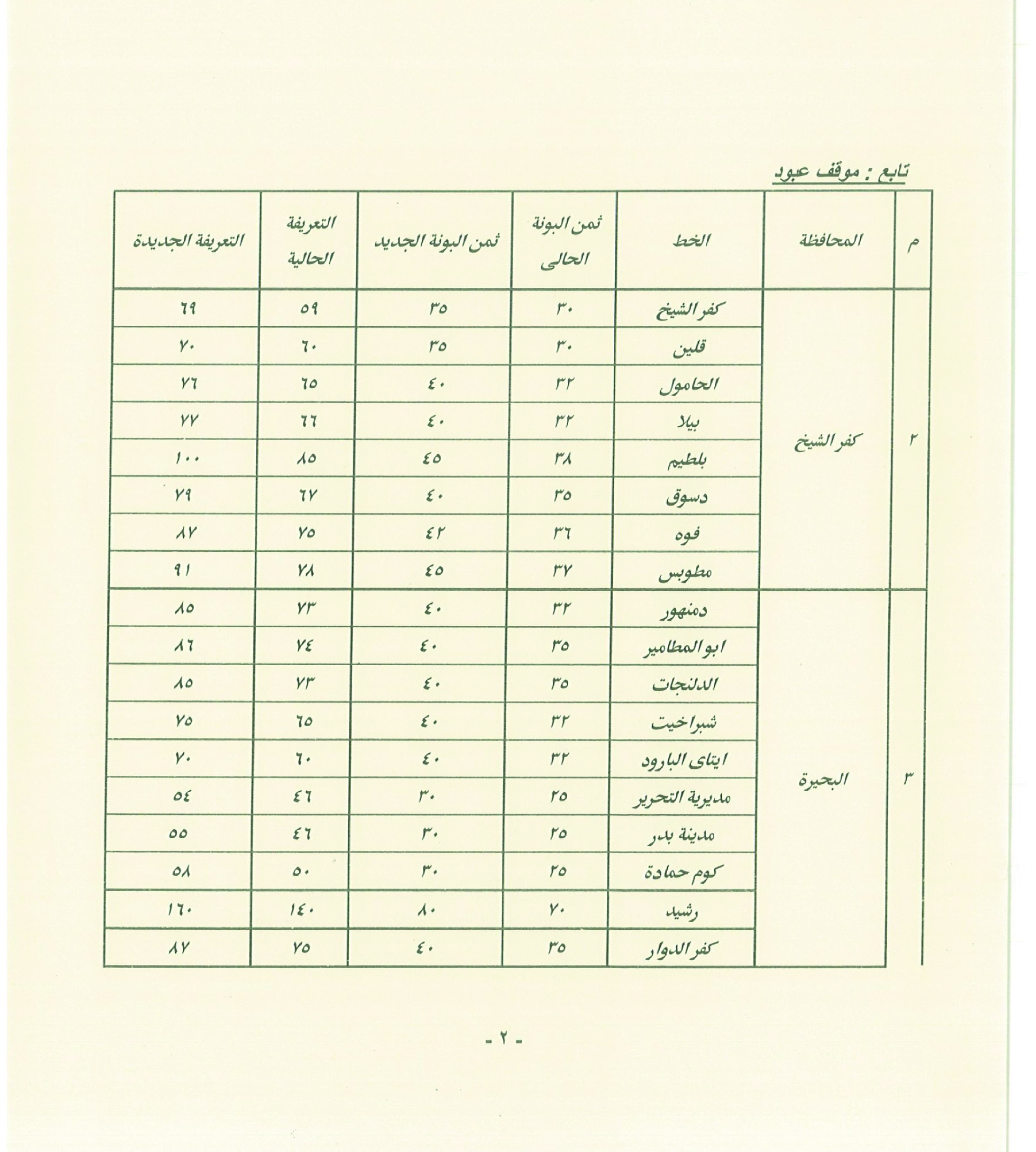 وأشار إلى أنه سيتم نشر البنرات والملصقات التي تتضمن الأسعار الجديدة للتعريفة في مداخل جميع المواقف بصورة واضحة أمام المواطنين، لتسهيل الاطلاع عليها وضمان الالتزام بها.