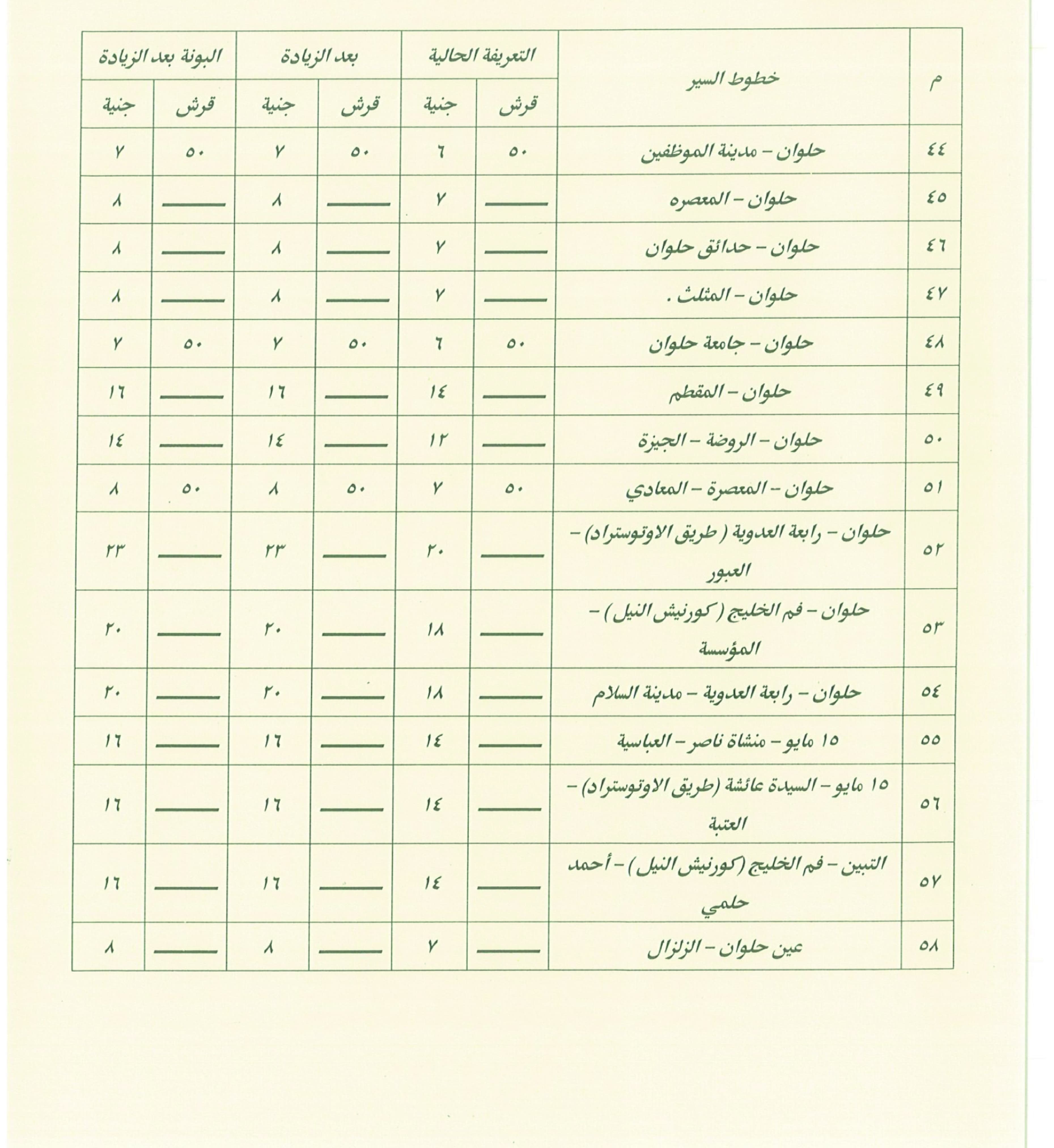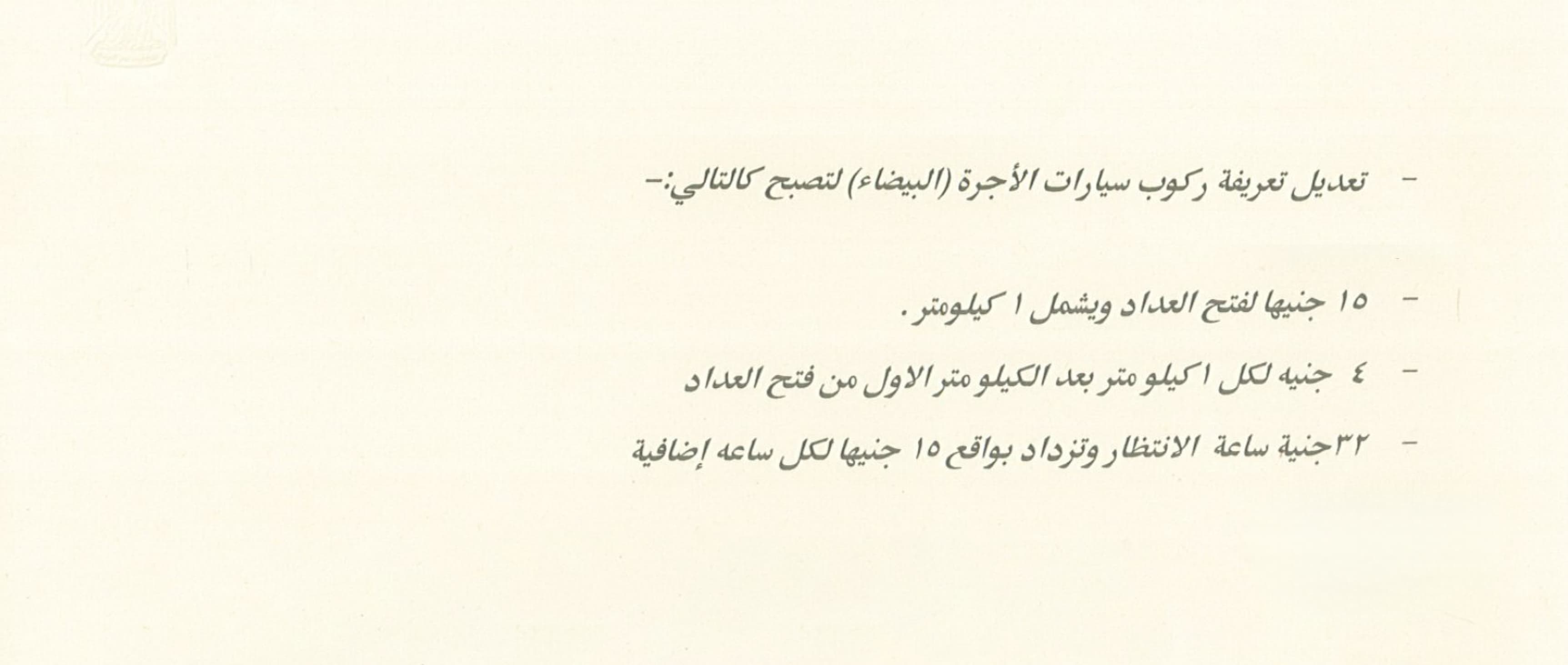 محافظ القاهرة يعتمد تعريفة الركوب الجديدة بعد زيادة أسعار الوقود.. وزيادة أجرة الأقاليم والسرفيس والتاكسي