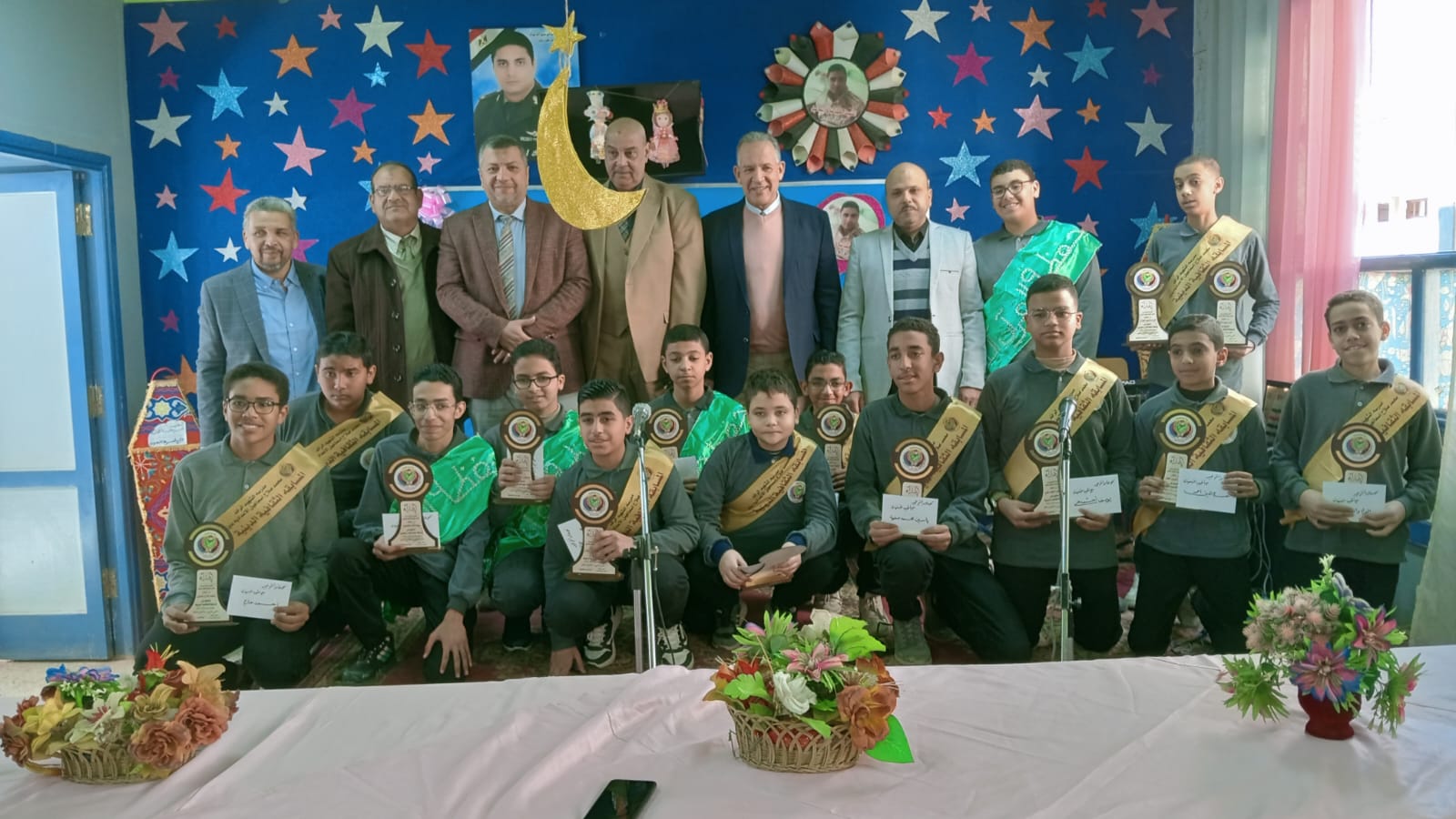 بحضور سيد الشريف مدير عام الشؤون التنفيذية بالمديرية وطارق الدسوقى مدير إدارة أسيوط التعليمية و احمد حسين وكيل الادارة وعبد العظيم عبد الصمد موجه اول اللغة العربية بإدارة أسيوط التعليمية والدكتورة ماجدة حسن مدير التعليم الاعدادى بالادارة والدكتور أسامة عربى رئيس مجلس أمناء المدرسة وياسر محمود مدير إدارة المدرسة وأسرة الشهيد محمد صلاح وقيادات الإدارة والمدرسة .