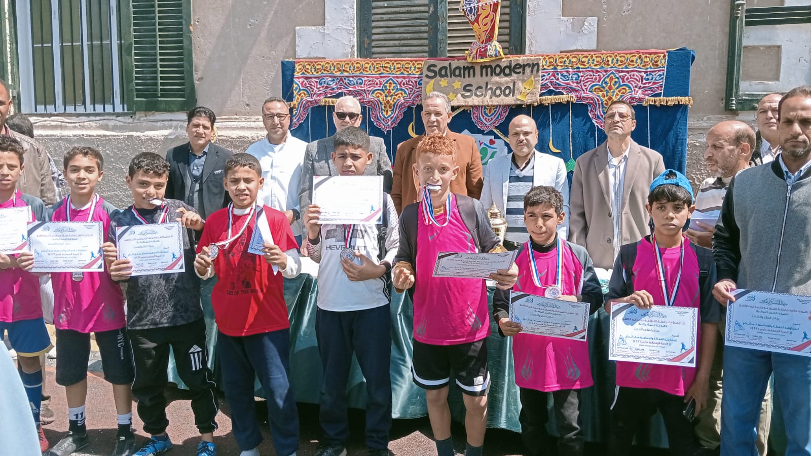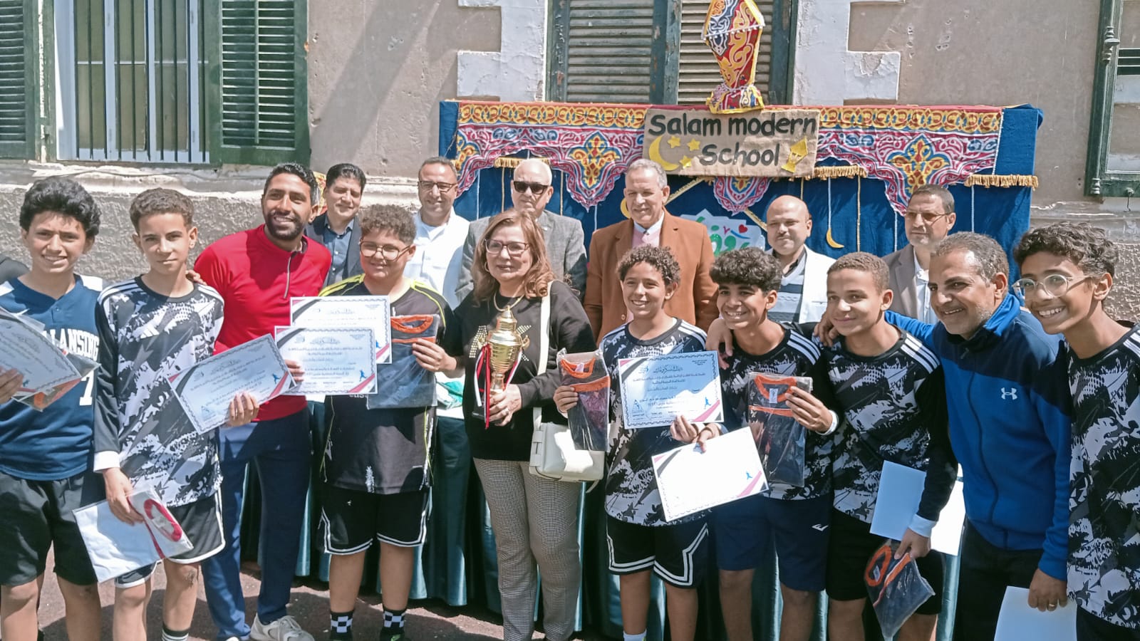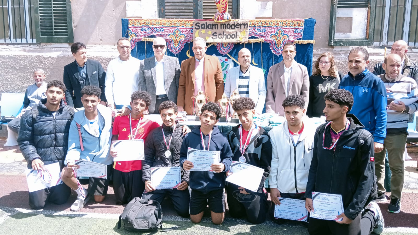جاء ذلك بحضور سيد الشريف مدير عام الشؤون التنفيذية بالمديرية والدكتور خالد عبد الجابر موجه عام التربية الرياضية بالمديرية وعدنان الشريف موجه اول التربية الرياضية بالمديرية والمهندس محمد الغطريفى وكيل نقابة الرياضيين بأسيوط وايمان زاهر ولسون مديرة مدرسة السلام الحديثة الثانوية المشتركة وبعض مشرفة المدارس والفرق المشاركة .