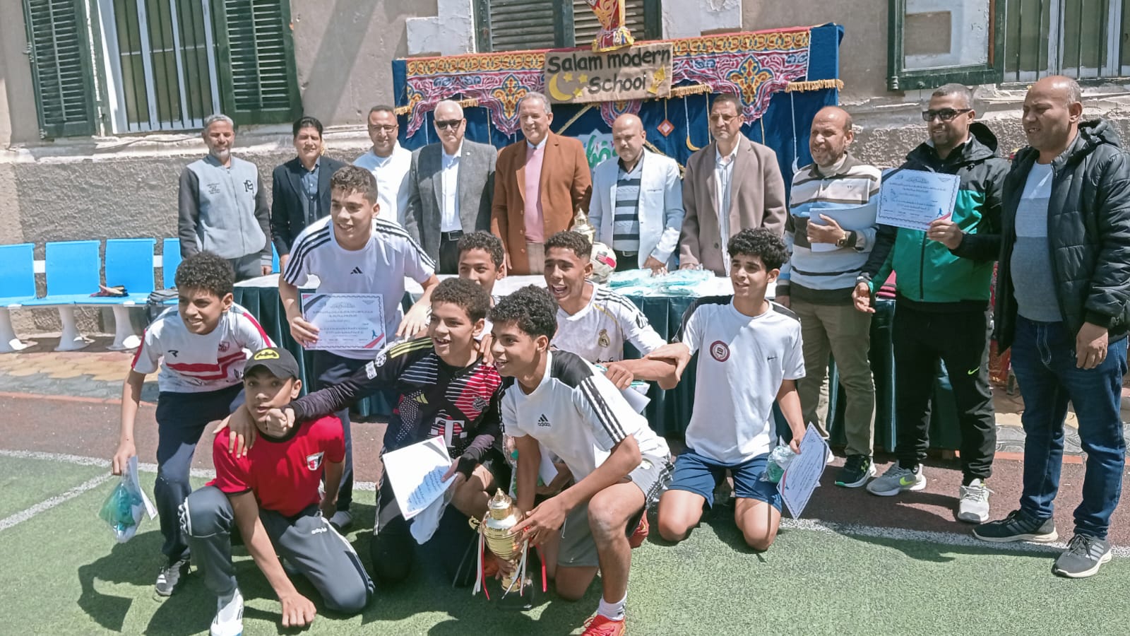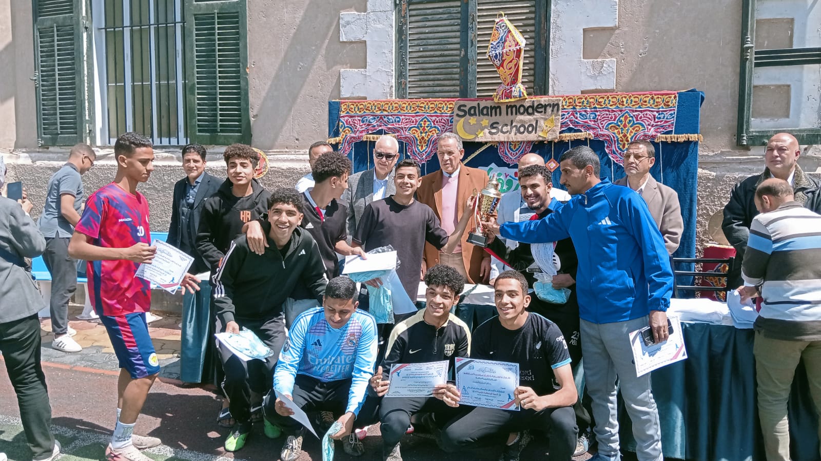 وحضر وكيل الوزارة ومرافقوه المباراة النهائية بين فريقى مدرسة السلام الحديثة ومدرسة التحرير الرسمية لغات والتى أسفرت عن فوز فريق مدرسة التحرير الرسمية لغات بالمركز الأول للمرحلة الإعدادية .