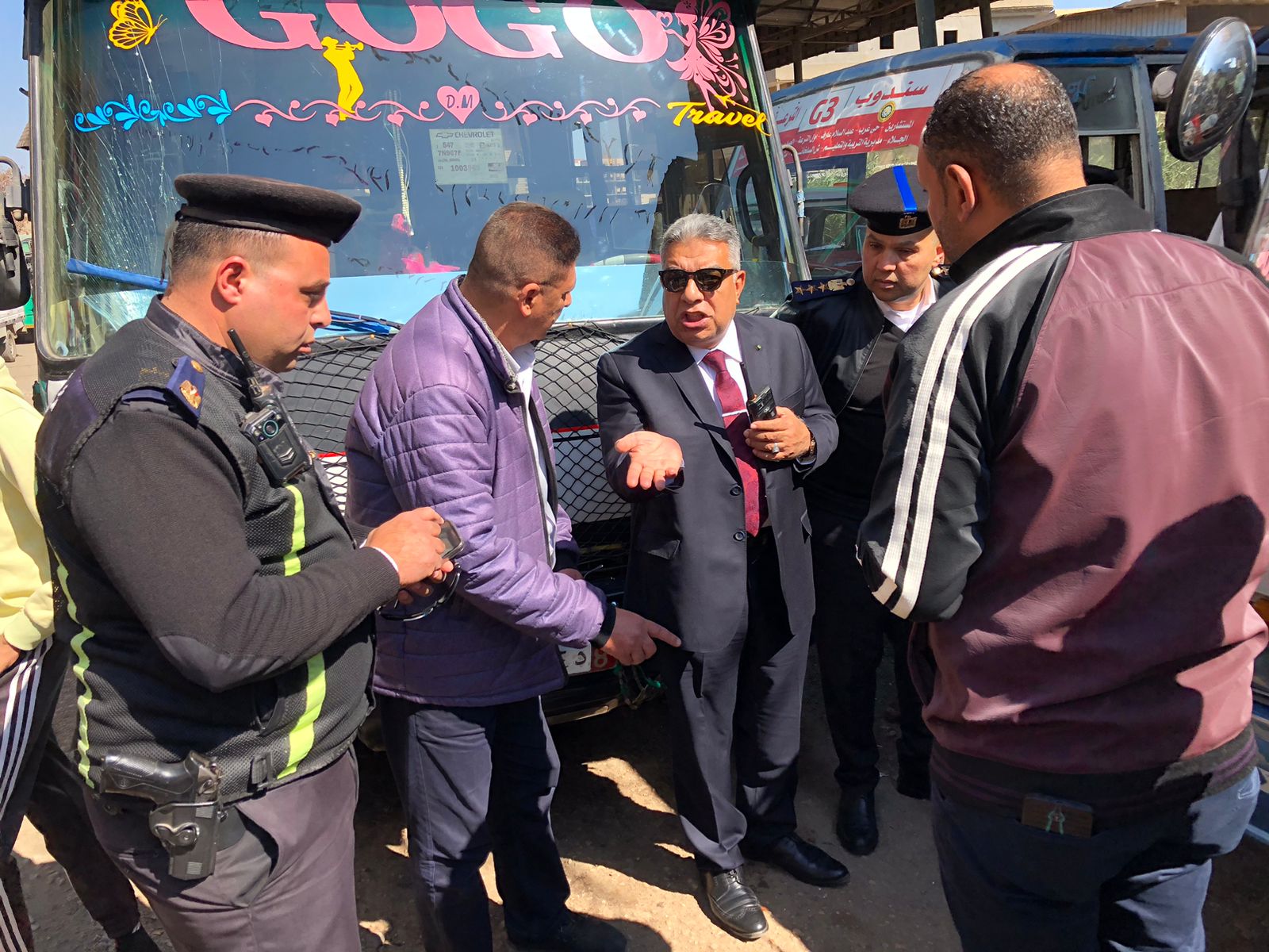 جاء ذلك بحضور العميد حاتم طه مدير الإدارة العامه للمرور واللواء عمرو عبدالرحمن المشرف العام علي المواقف بالمحافظه والمحاسب أحمد البنداري مدير تشغيل مشروع النقل الجماعي .