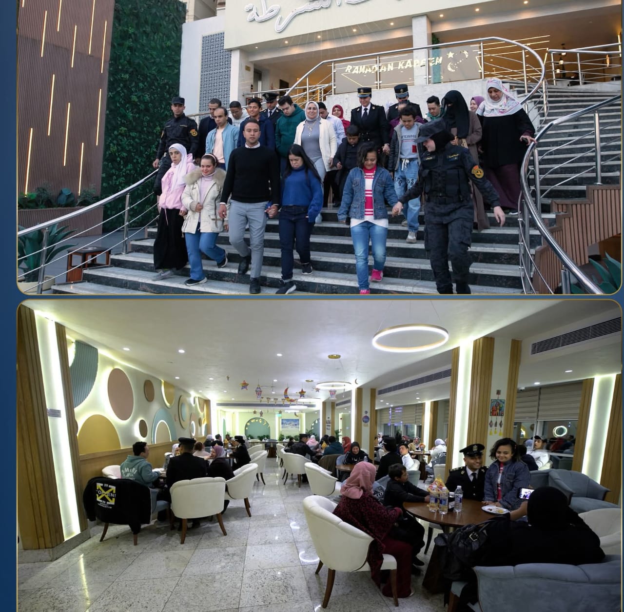 كما إضطلع قطاعى أمن "القاهرة ، الجيزة" وكافة مديريات الأمن على مستوى الجمهورية بتنظيم مأدبة إفطار بمقرات نادى الشرطة بالمحافظات لعدد من أمهات الأطفال ذوى الهمم صحبة أبنائهن تقديراً لهن على الجهد المضاعف المبذول فى رعاية أبنائهن.