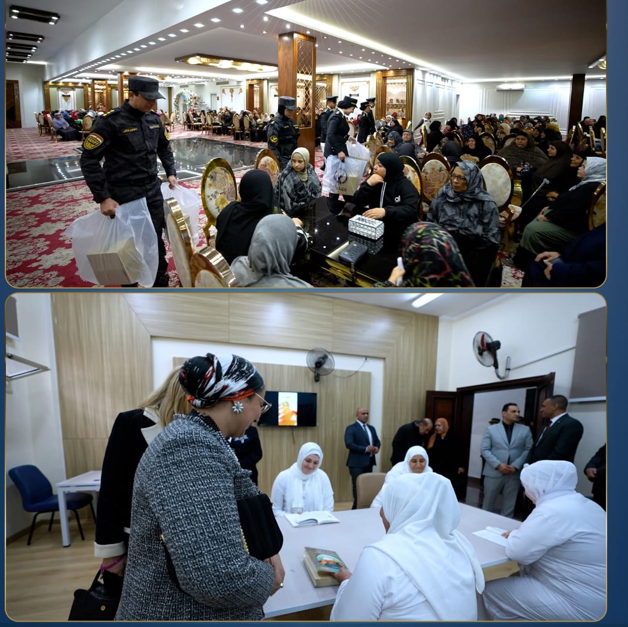 كما إضطلعت كافة مديريات الأمن على مستوى الجمهورية بإهداء عدداً من السيدات المعيلات والأشد إحتياجاً بنطاق كل محافظة عبوات مواد غذائية.