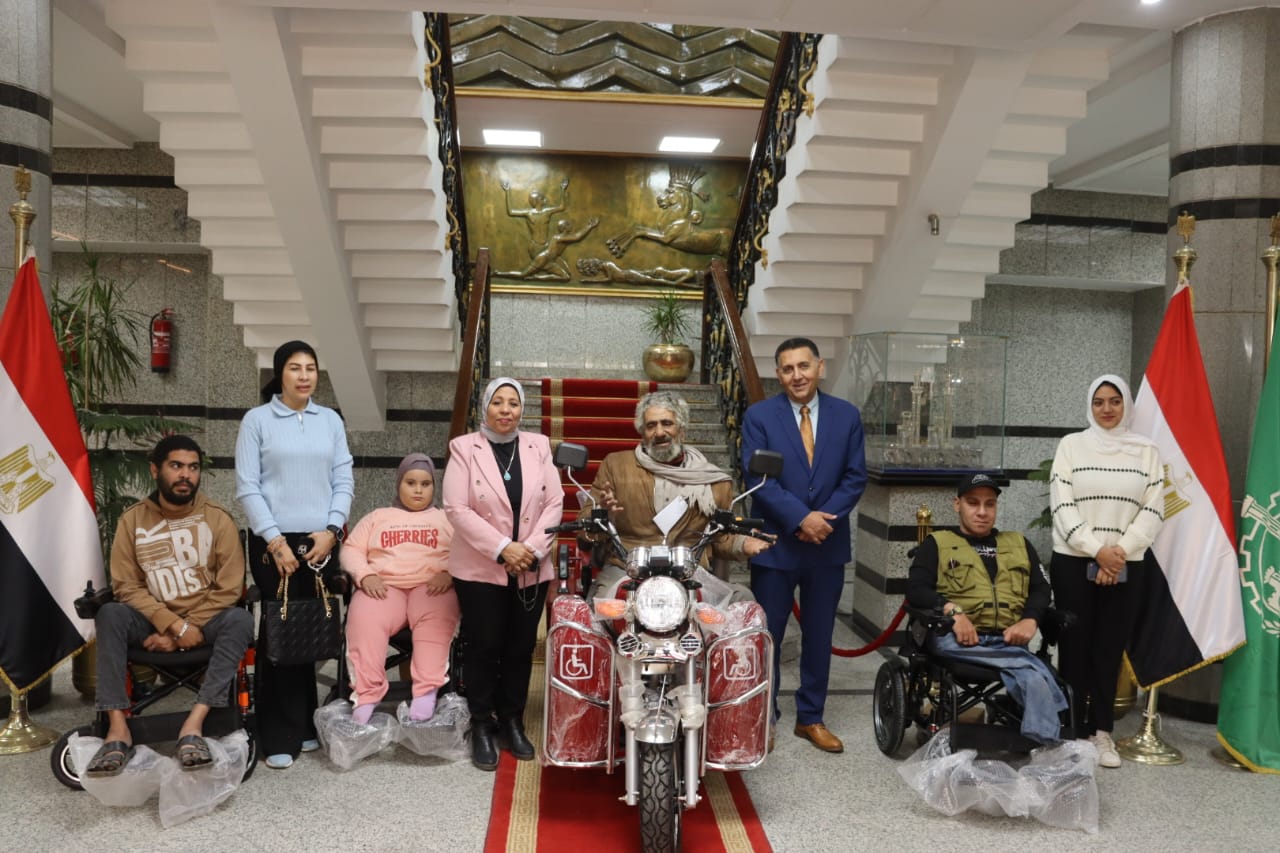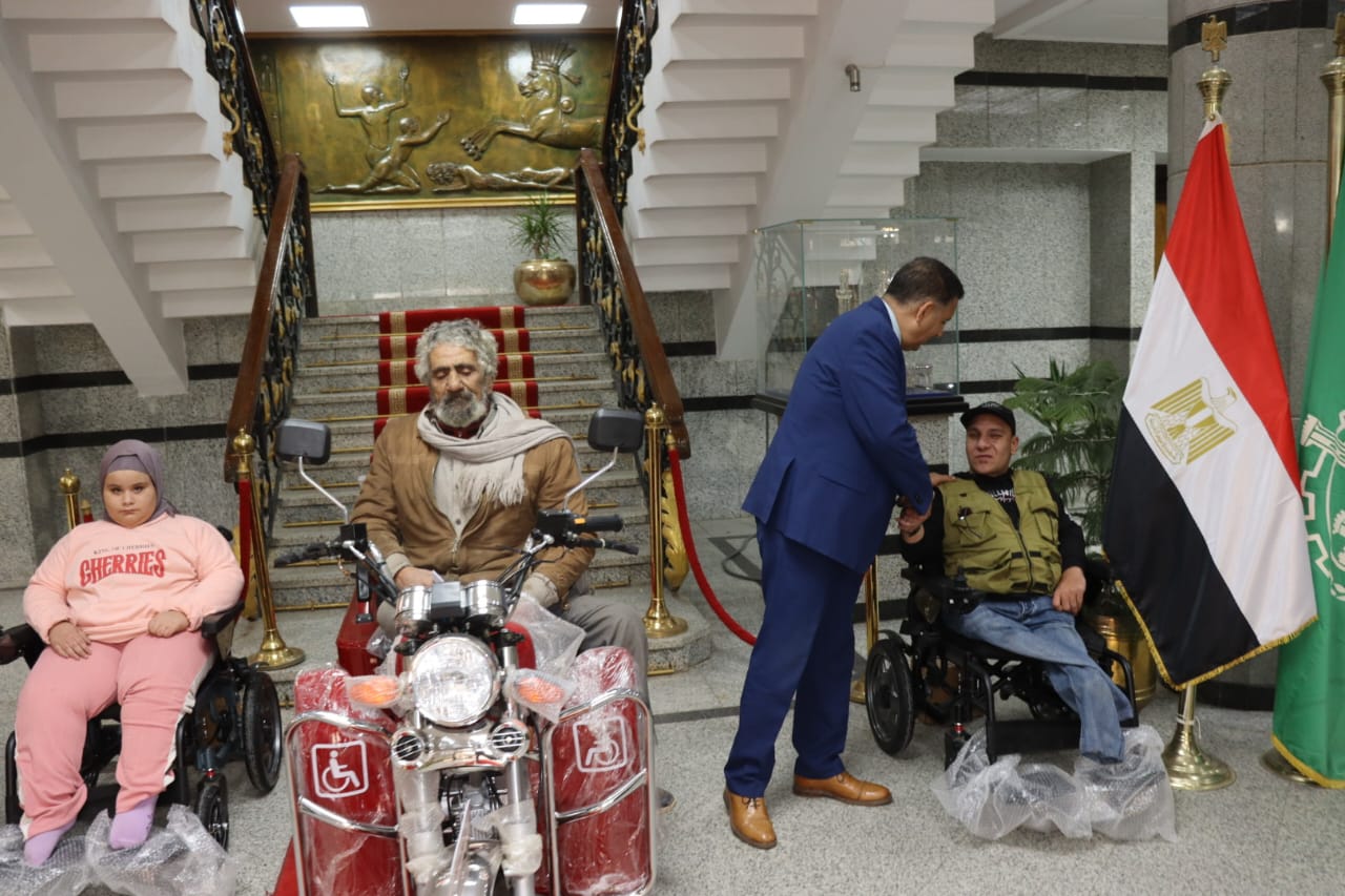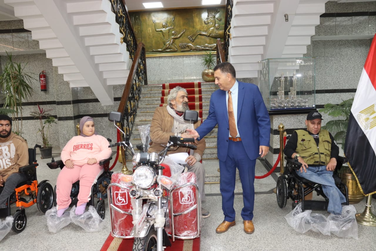 بالصور .. محافظ القليوبية يُسلم كراسي متحركة ودراجة بخارية لعدد من ذوي الهمم لدعم دمجهم مجتمعيًا