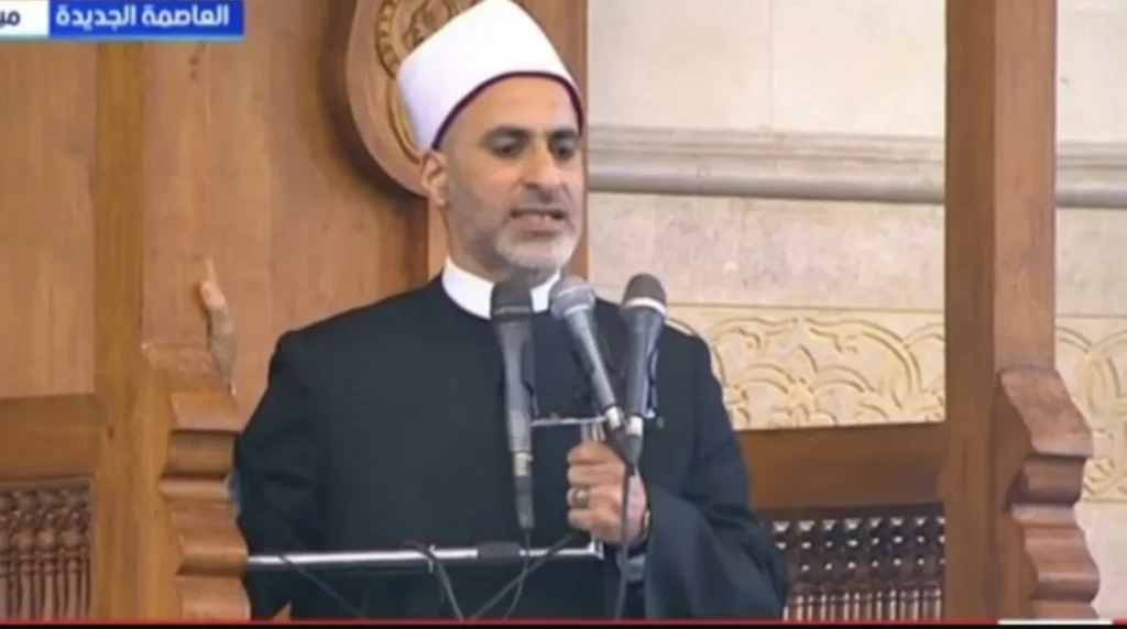 أمام الرئيس وكبار المسؤولين.. إشادة بجهود السيسي في خطبة عيد الفطر بمسجد الفتاح العليم