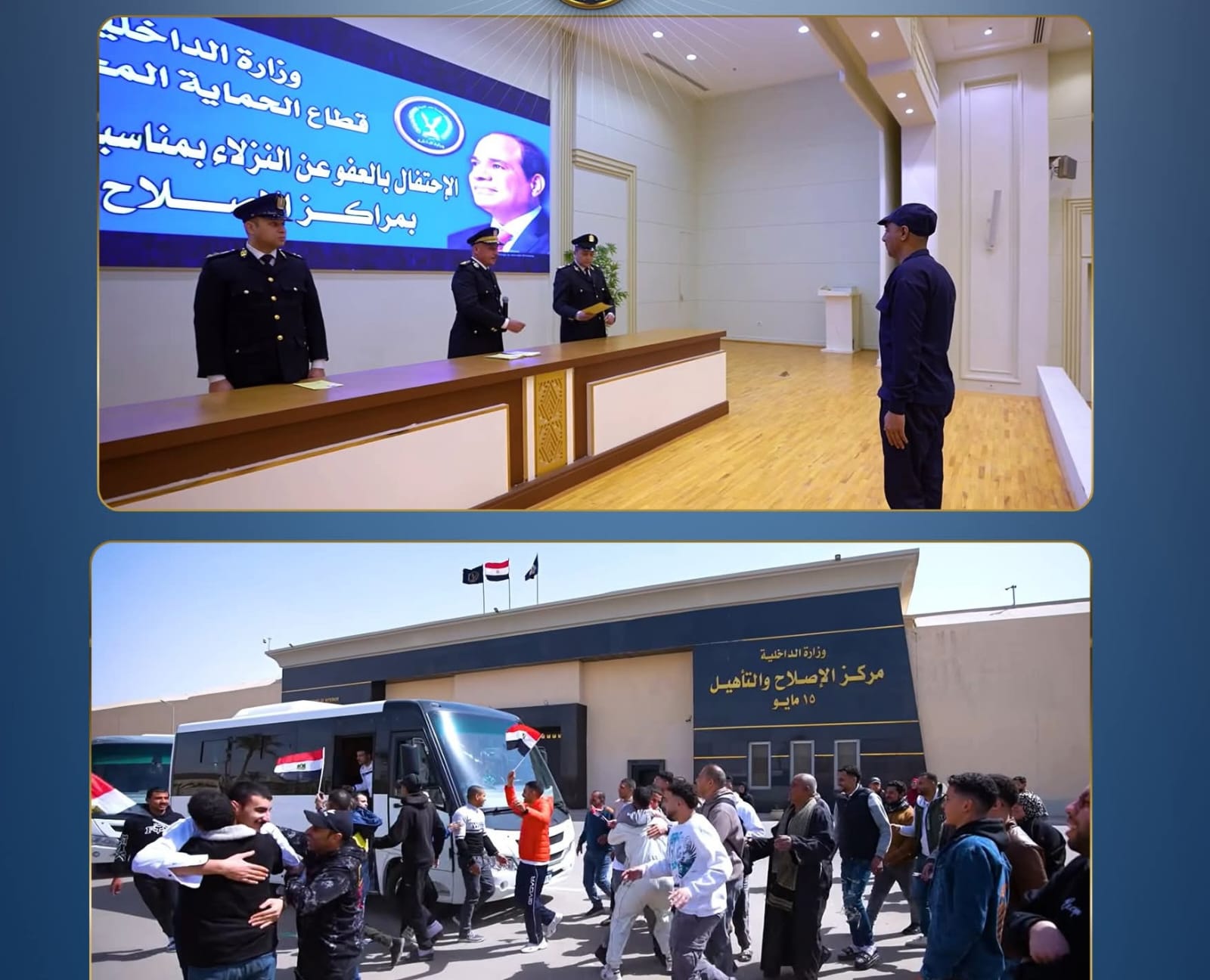 وتنفيذاً لقرار رئيس الجمهورية بشأن الإفراج بالعفو عن باقى مدة العقوبة بالنسبة لبعض المحكوم عليهم من نزلاء ونزيلات مراكز الإصلاح والتأهيل الذين إستوفوا شروط العفو الرئاسى بمناسبة الإحتفال بعيد الفطر المبارك لعام 2026 فقد عقد قطاع الحماية المجتمعية لجان لفحص ملفات النزلاء على مستوى الجمهورية لتحديد مستحقى الإفراج بالعفو عن باقى مدة العقوبة.. حيث إنتهت أعمال اللجان إلى إنطباق القرار على 1431 نزيلاً ممن يستحقون الإفراج عنهم بالعفو وذلك عقب خضوعهم لبرامج الإصلاح والتأهيل وفق أحدث النظم التى تطبقها وزارة الداخلية داخل تلك المراكز.