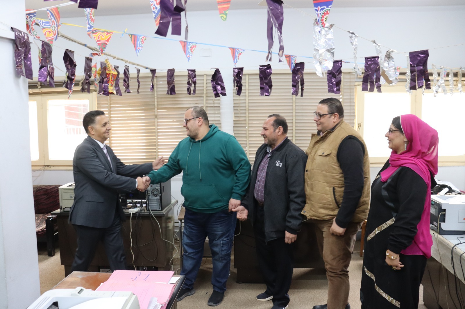 قدم الدكتور المهندس حسام عبد الفتاح، محافظ القليوبية، التهنئة للعاملين بديوان عام المحافظة بمناسبة عيد الفطر المبارك، وذلك عقب انتهاء إجازة العيد واستئناف العمل، ويرافقه المهندسة جيهان مسعود سكرتير عام المحافظة.