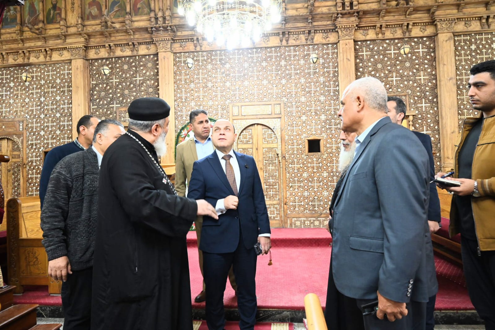 كما تفقد اللواء دكتور علاء عبدالمعطي كنيسة السيدة العذراء والشهيد أبانوب الأثرية، حيث كان في استقباله القمص أبانوب لويس والقمص بيشوي، واستمع إلى شرح وافٍ حول المقتنيات الأثرية داخل الكنيسة، والتي تضم البئر المقدس الذي شربت منه العائلة المقدسة، والماجور الحجري الذي استخدمته السيدة العذراء، إلى جانب عدد من الأيقونات والمقتنيات ذات القيمة التاريخية والدينية الكبيرة.
