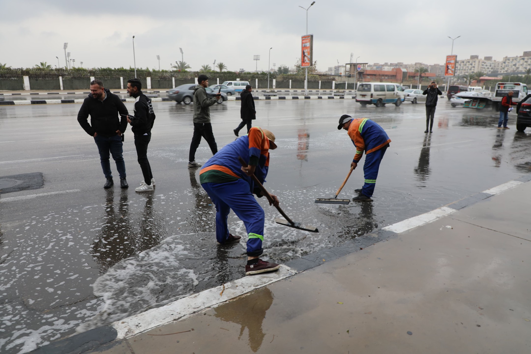 وأكد محافظ القاهرة أن جميع رؤساء الأحياء ومسئولى شركتى المياه والصرف الصحى وهيئة النظافة متواجدون بالشارع ميدانيًا ، مشيراً إلى انتشار ١٣٧ معدة ( شفاطات وبدالات ونافوري) بمطالع ومنازل الكباري فى كافة أحياء العاصمة للتعامل الفورى مع تراكمات المياه ، بالإضافة إلى وجود ٢٤ الف بالوعة أمطار لتصريف المياه.
