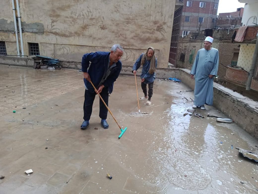وأكدت المديرية استمرار المتابعة الميدانية لحظة بلحظة، مع تكثيف أعمال النظافة وشفط المياه من الأسطح، بما يضمن عدم تأثر المساجد بسوء الأحوال الجوية.