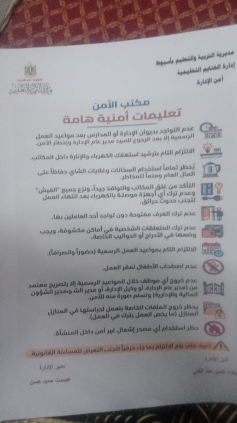 مدير تعليم أسيوط يؤكد استمرار تنفيذ خطة ترشيد الكهرباء وجولات صباحية ومسائية على المدارس لضمان الالتزام بالتعليمات