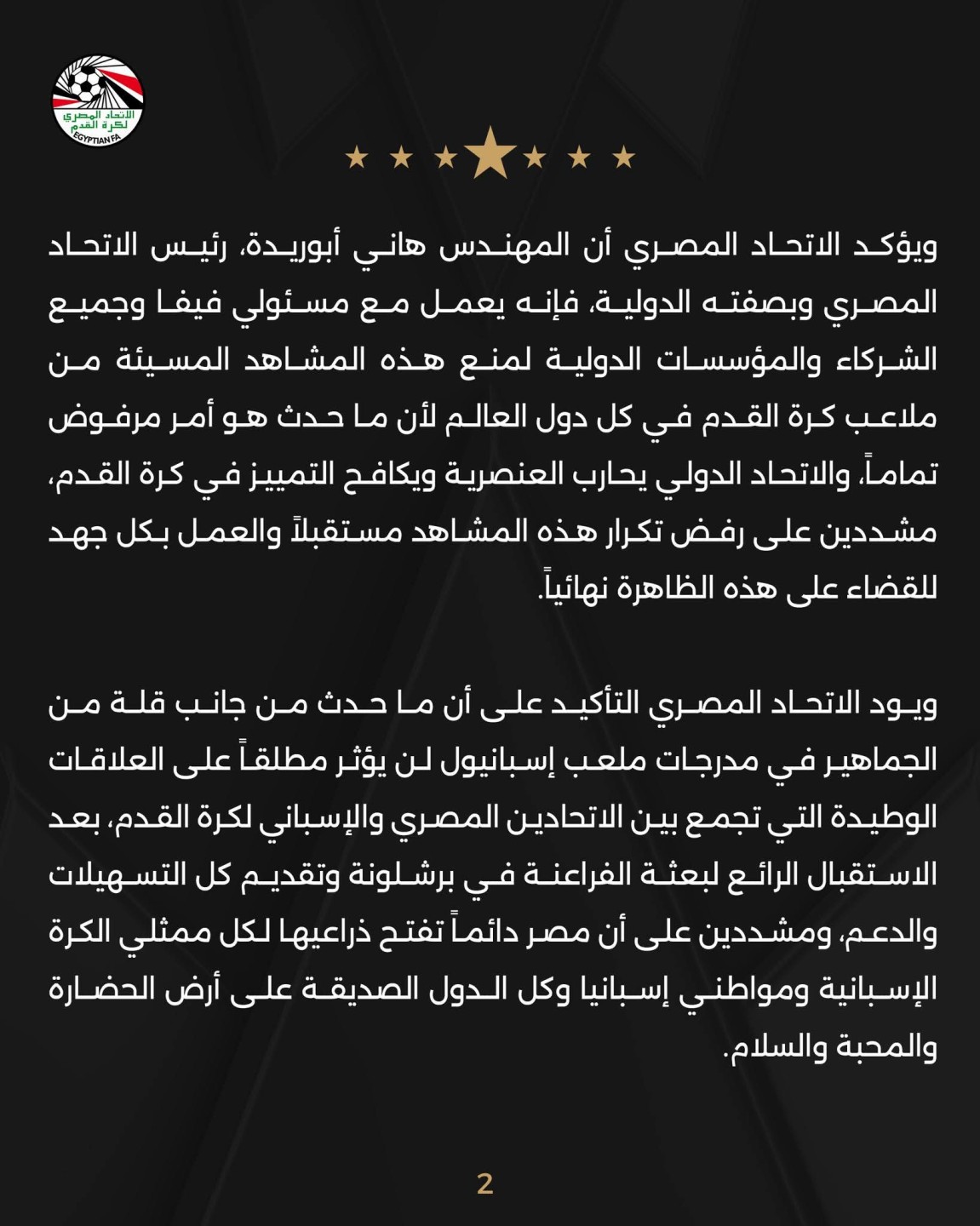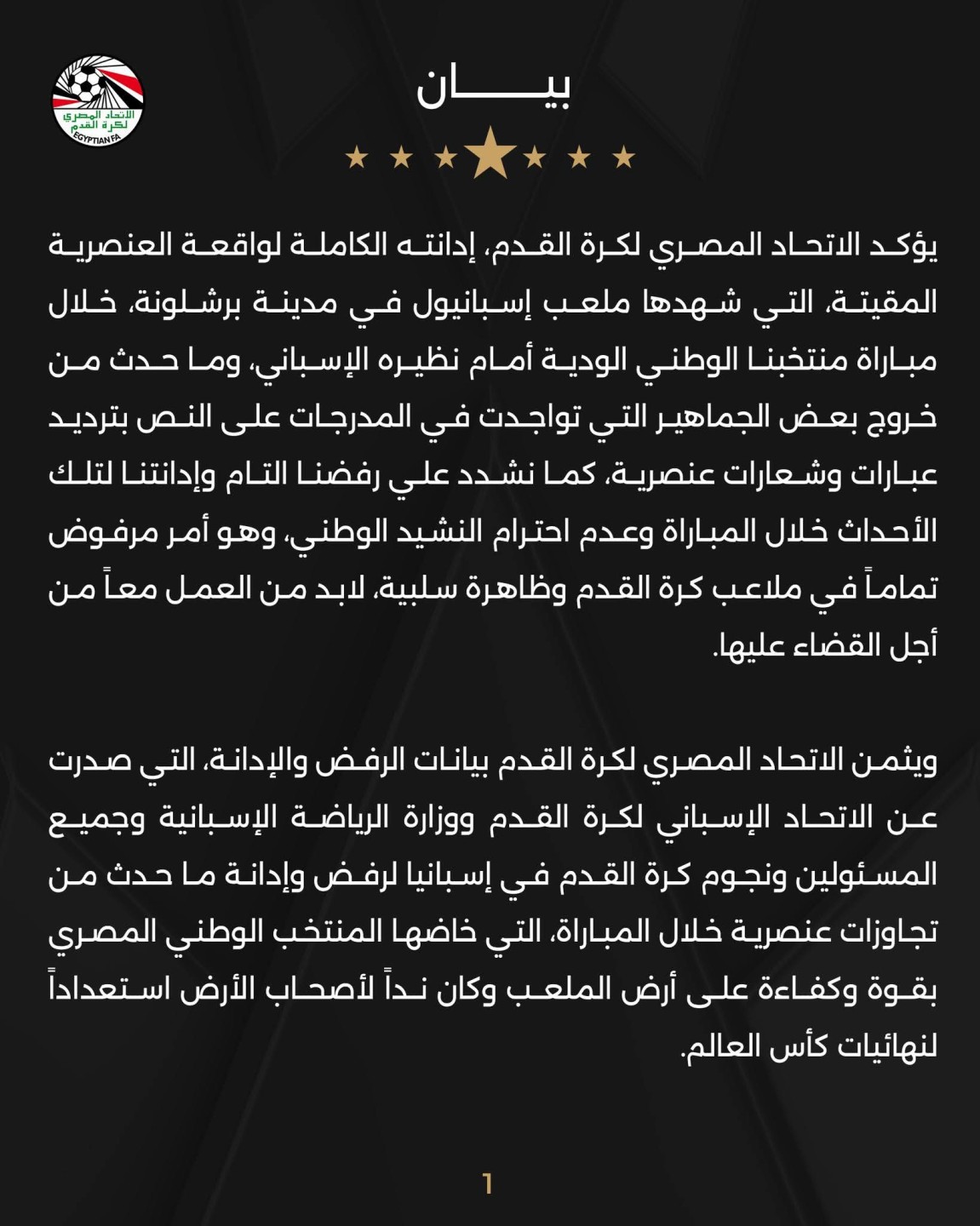 بيان رسمي صادر عن الأتحاد المصري لكرة القدم عقب مباراة مصر وأسبانيا .. أعرف التفاصيل