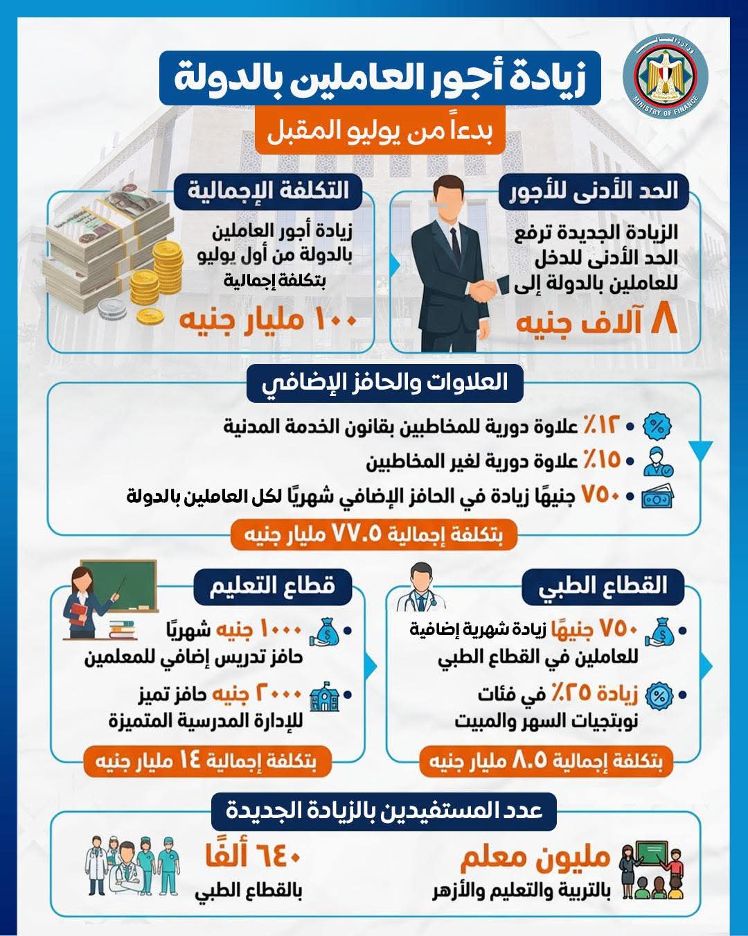 وزير المالية : زيادة أجور العاملين بالدولة إعتباراً من اول يوليو المقبل بتكلفة إجمالية تتجاوز ١٠٠ مليار جنيه