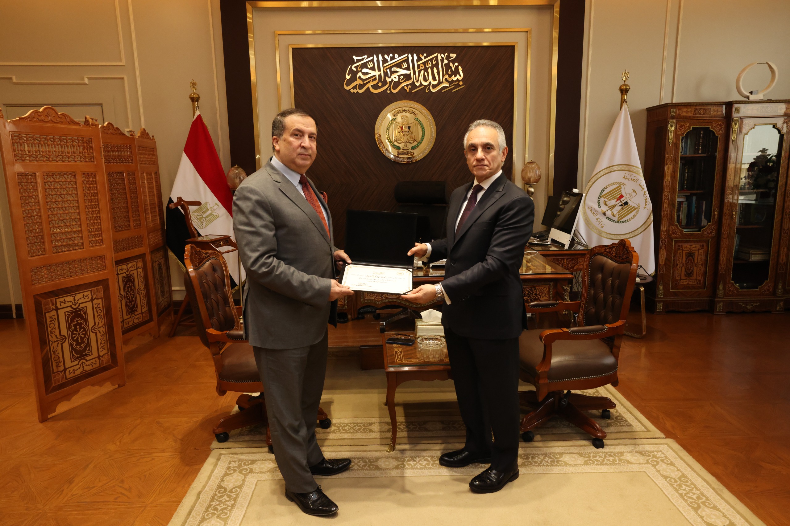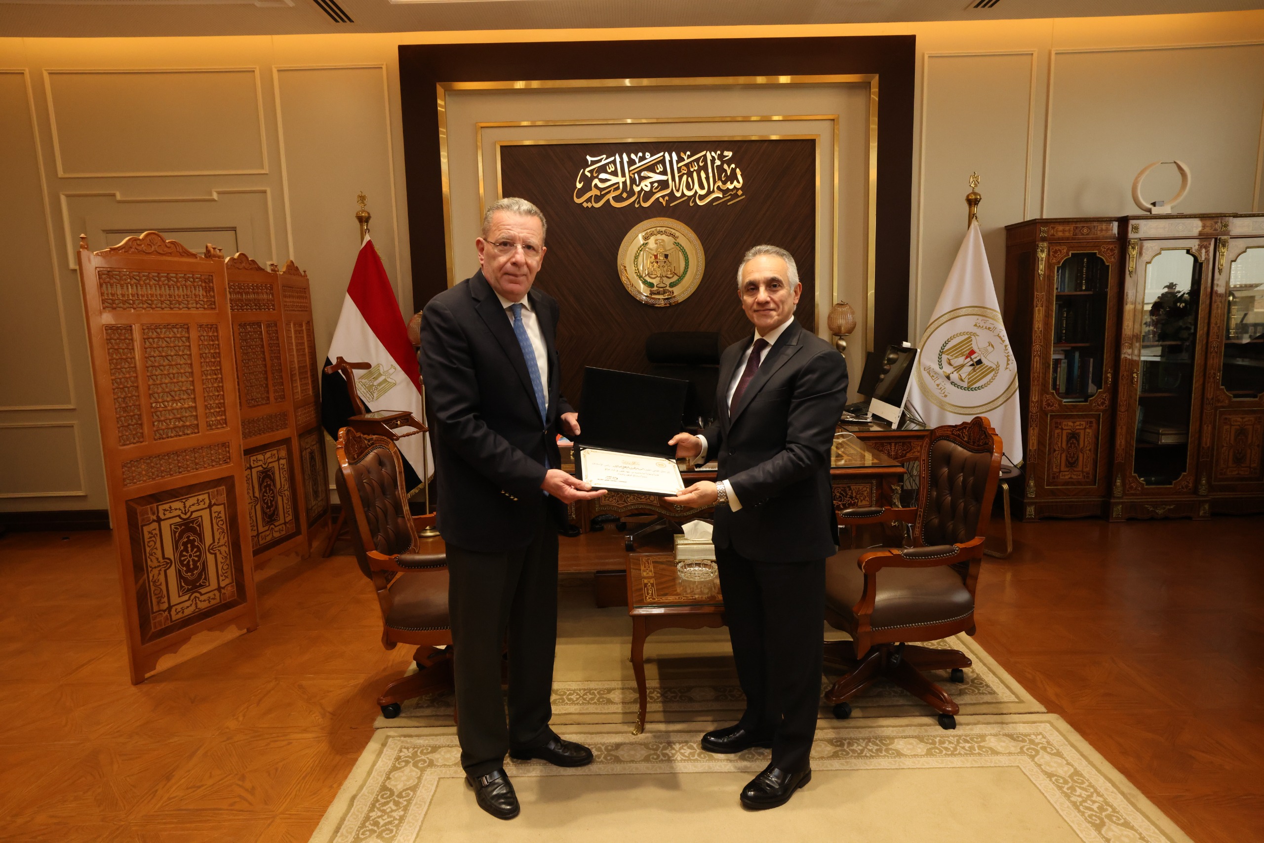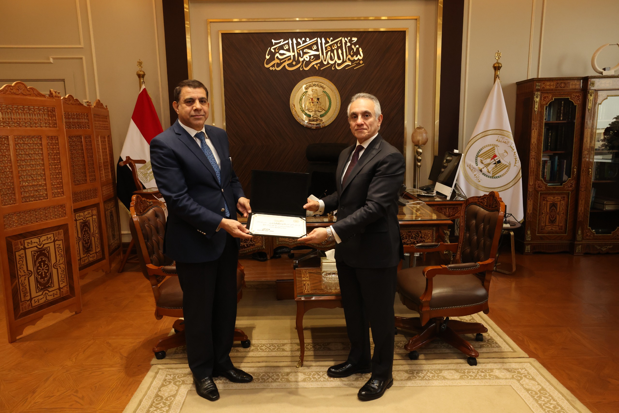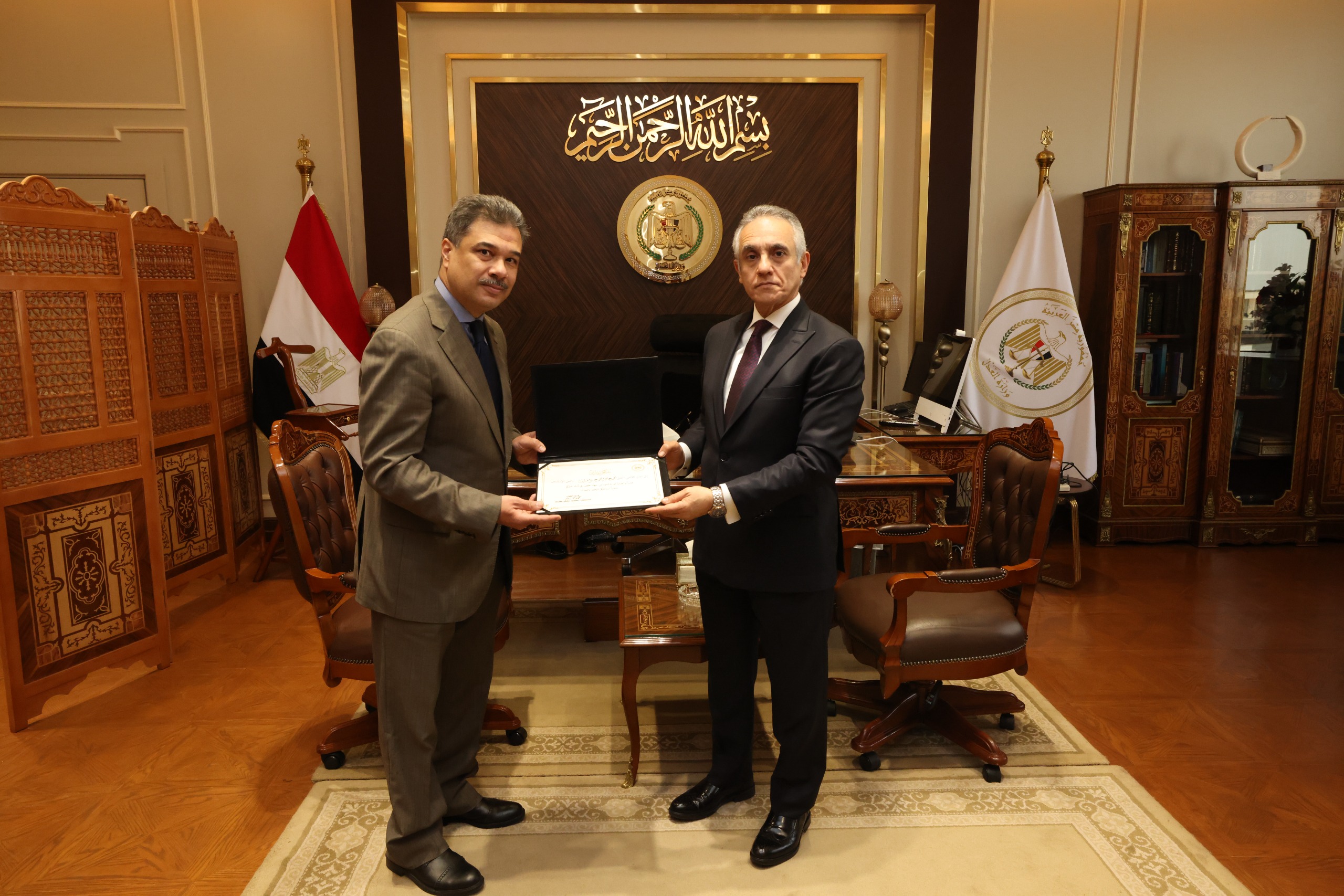 من ناحية أخرى، قام وزير العدل بتكريم مساعدي وزير العدل السابقين في لفتة طيبة تعكس التقدير لجهودهم خلال فترة عملهم، وإسهاماتهم في دعم منظومة العمل داخل الوزارة، وذلك في إطار الحرص على تكريم الكفاءات ودورها في تحقيق التطوير المؤسسي وتعزيز كفاءة الأداء.