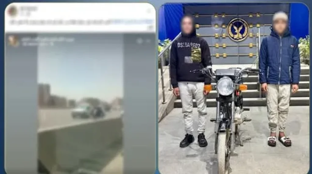 فى إطار كشف ملابسات منشور مدعوم بمقطع فيديو تم تداوله بمواقع التواصل الإجتماعى تضرر خلاله الناشر من قيام شخصين يستقلان دراجة نارية بسرقة حقيبة من أحد الأشخاص والفرار عكس الإتجاه على الطريق الدائرى بالجيزة بالفحص أمكن تحديد وضبط الدراجة النارية الظاهرة بمقطع الفيديو ومستقليها عاطلين لهما معلومات جنائية مقيمان بالجيزة وبمواجهتهما إعترفا بشروعهما فى سرقة هاتف محمول من أحد الأشخاص بأسلوب الخطف حال توقفه على الطريق الدائرى إلا أنهما لم يتمكنا، وفوجئا بقيام آخر بتصويرهما فقاما بمحاولة إخفاء وجهيهما ولاذا بالفرار تم التحفظ على الدراجة النارية وإتخاذ الإجراءات القانونية حيالهما.