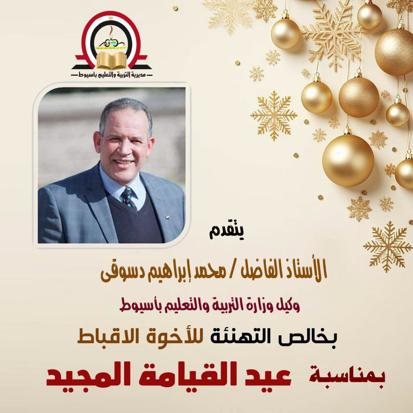 وكيل وزارة التعليم بأسيوط يهنىء قداسة البابا تواضروس الثانى والقيادات الكنسية بمناسبة عيد القيامة المجيد