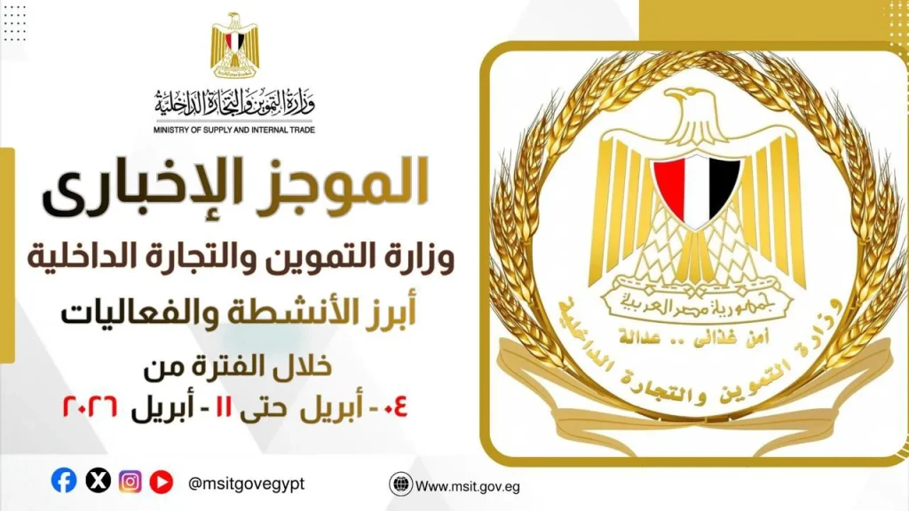 تعرف على الموجز الاخباري لأبرز أنشطة وزارة التموين والتجارة الداخلية من ٤ وحتى ١١ ابريل