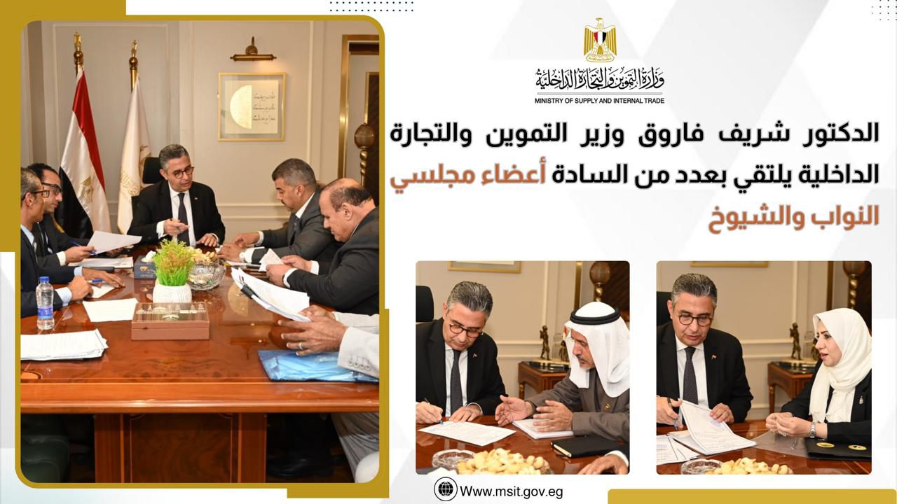 الاجتماع تناول وضع منظومة الأمن الغذائي، بما في ذلك إنتاج وتوزيع السلع الاستراتيجية لضمان وجود مخزون آمن لمدد زمنية مطمئنة، مما يسهم في ضبط الأسواق وتوازن الأسعار، ولا سيما في ظل الأحداث التي تشهدها المنطقة، والتي أثرت بشكل سلبي على سلاسل الإمداد والتمويل، وفي هذا الصدد، أشار السيد وزير التموين والتجارة الداخلية إلى أن أرصدة السلع الأساسية، التي تشمل القمح، والأرز، والسكر، والزيت، والمكرونة، واللحوم، تقع في مستويات مطمئنة للغاية، وهو ما يسهم في مواجهة تداعيات الأزمة الحالية وتأثيراتها على سلاسل الإمداد العالمية، وضمان استمرار توافر السلع.