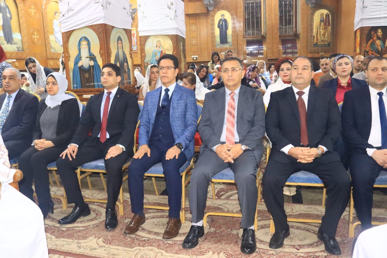 وكان في استقبال المحافظ لدى وصوله الكنيسة نيافة الأنبا مكسيموس، مطران بنها وقويسنا وتوابعها، وعدد من الآباء الكهنة، وسط أجواء سادتها البهجة والمودة، وبحضور الدكتورة إيمان ريان، نائب المحافظ، والعميد شهاب الدين طارق مدير مكتب المخابرات العامة بالقليوبية، والعميد أحمد الجبالي مدير مكتب الأمن الوطني ببنها، والمهندسة جيهان مسعود، السكرتير العام للمحافظة، واللواء محمد عقل السكرتير العام المساعد، والدكتور عبد الرحمن رضوان وكيل وزارة الأوقاف بالقليوبية، والسادة أعضاء مجلس النواب، إلى جانب الأستاذ وليد الشهاوي رئيس مجلس مدينة بنها، وعدد من القيادات الأمنية والتنفيذية والشعبية.