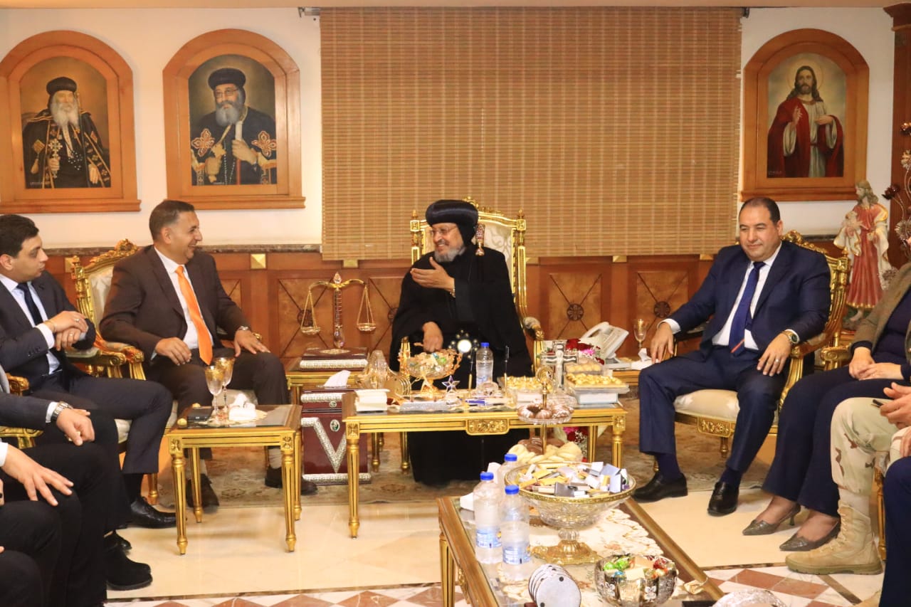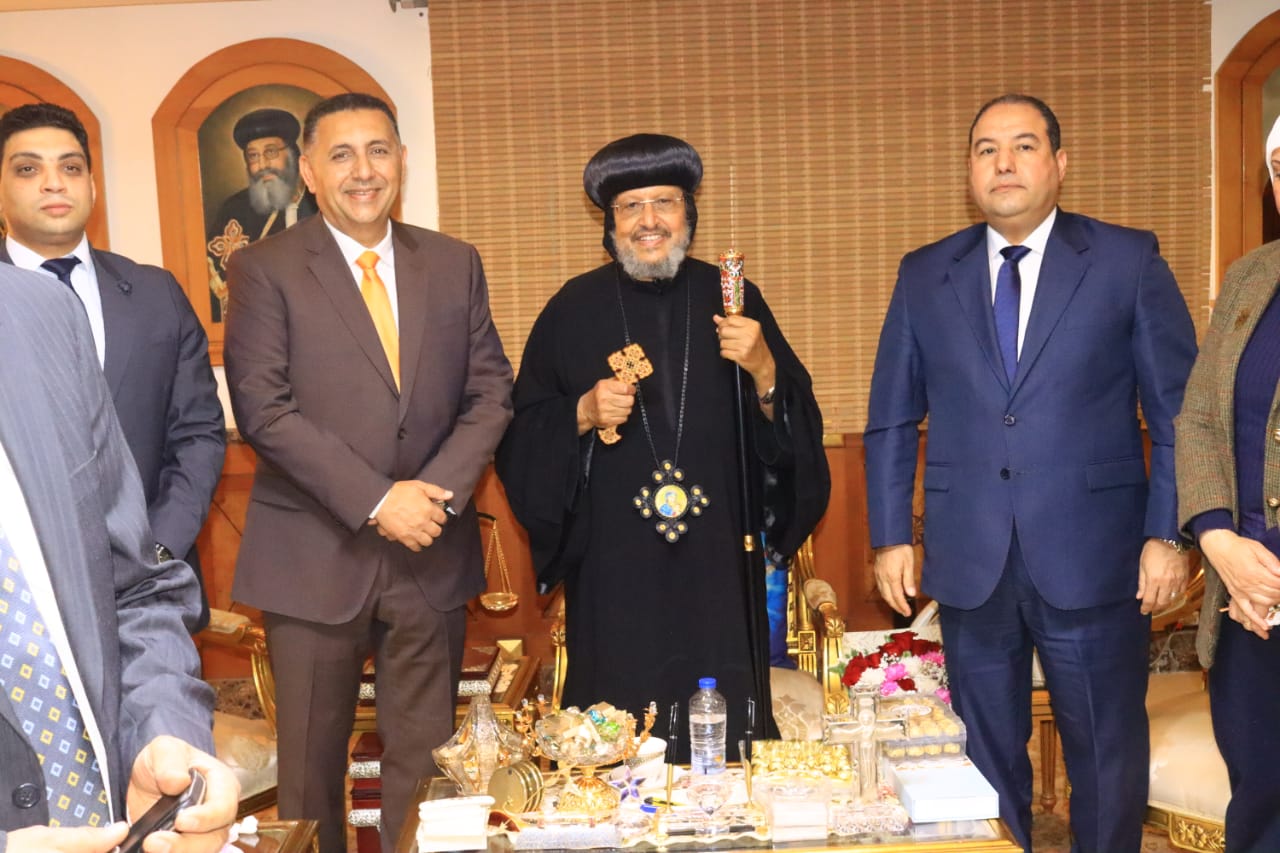 محافظ القليوبية يهنئ الأنبا مرقس بمطرانية شبرا الخيمة بعيد القيامة المجيد