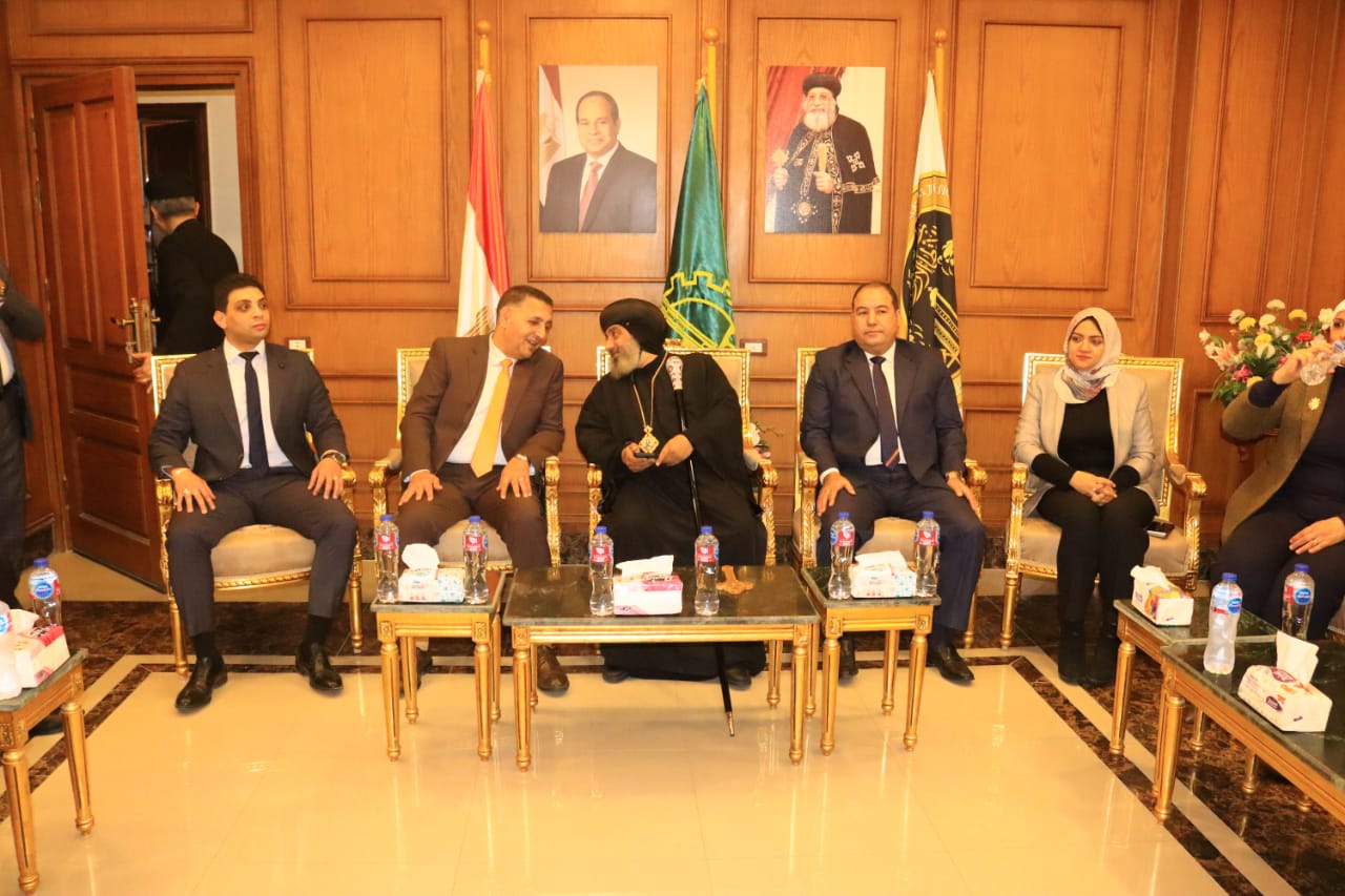 وخلال الزيارة، أعرب المحافظ عن تقديره للدور الوطني للكنيسة المصرية، مؤكدًا أن المصريين دائمًا ما يثبتون للعالم أنهم جسد واحد في وطن واحد، يتقاسمون الأفراح والآمال. من جانبه، أعرب نيافة الأنبا نوفير عن خالص شكره وتقديره لزيارة المحافظ والوفد المرافق له، مثمنًا الجهود المبذولة لتطوير المحافظة والارتقاء بكافة الخدمات المقدمة للمواطنين.