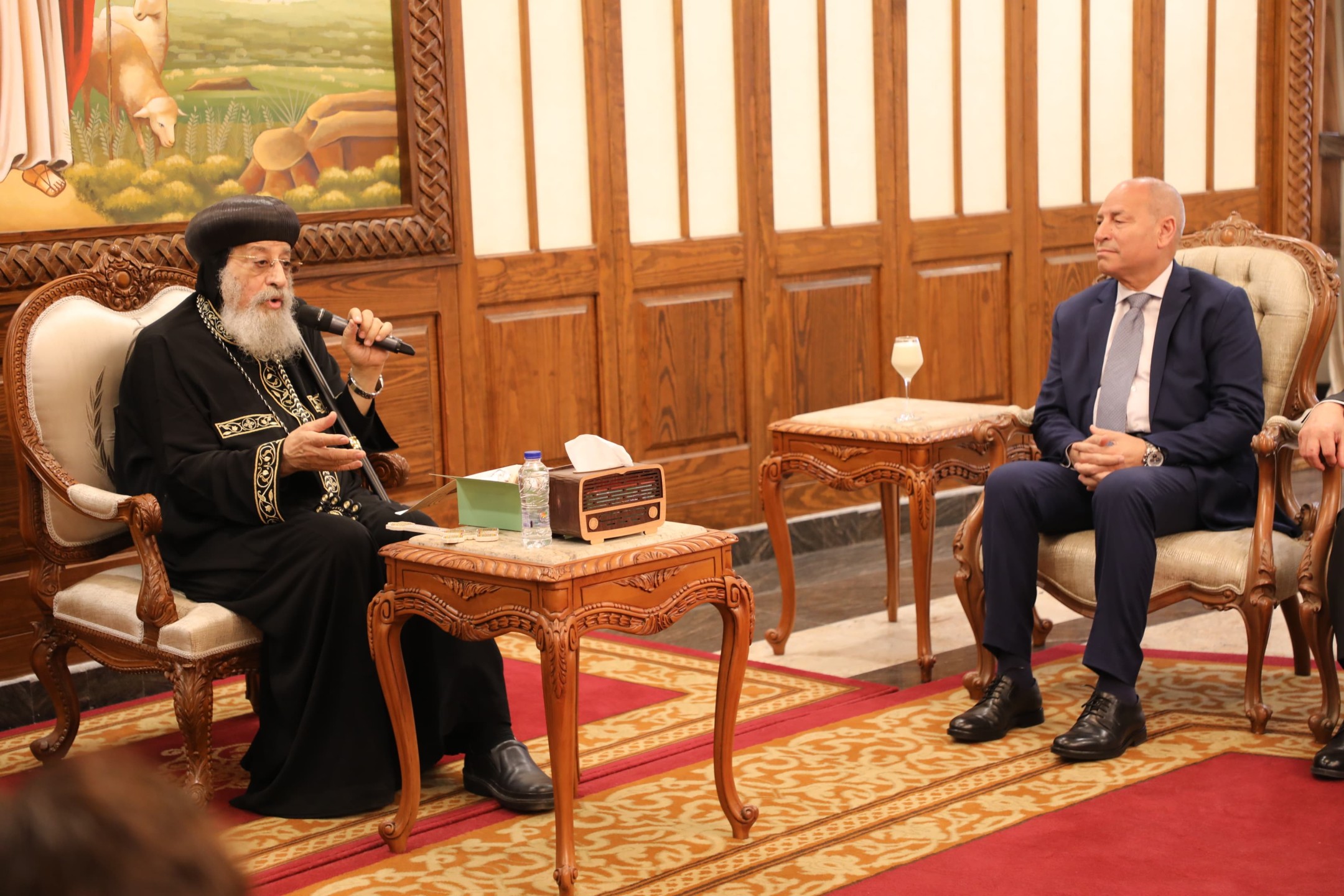 محافظ القاهرة فى زيارة البابا تواضروس الثاني بابا الإسكندرية وبطريرك الكرازة المرقسية بالمقر الباباوي بالعباسية لتقديم التهنئة بمناسبة عيد القيامة