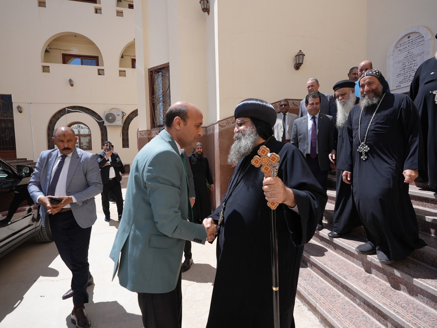 واستهل محافظ أسيوط جولته بزيارة مركز خدمات الكاروز بمدينة أسيوط الجديدة، التابع لمطرانية الأقباط الأرثوذكس بأبنوب، حيث قدم التهنئة لنيافة الأنبا بيسنتي، أسقف إيبارشية أبنوب والفتح وأسيوط الجديدة ودير الشهيد مارمينا العجايبي، ثم توجه إلى مطرانية الأقباط الكاثوليك بشارع الثورة بحي شرق، لتهنئة نيافة الأنبا دانيال مطران الأقباط الكاثوليك، قبل أن يواصل جولته بزيارة مطرانية أسيوط بشارع النميس، لتقديم التهنئة لنيافة الأنبا يوأنس أسقف أسيوط والبداري وساحل سليم وتوابعهم، كما شملت الجولة زيارة الكنيسة الإنجيلية الثانية، حيث قدم التهنئة للقس رفيق ثابت وشعب الكنيسة.