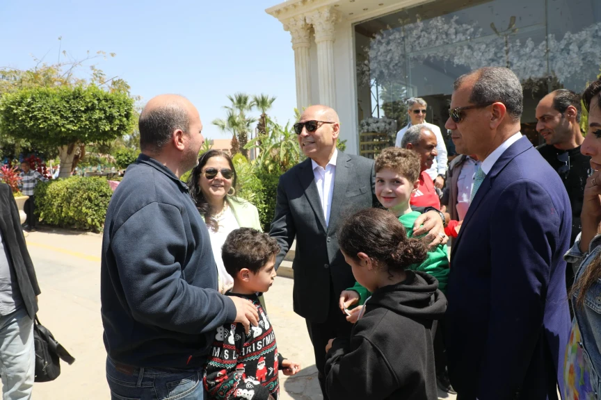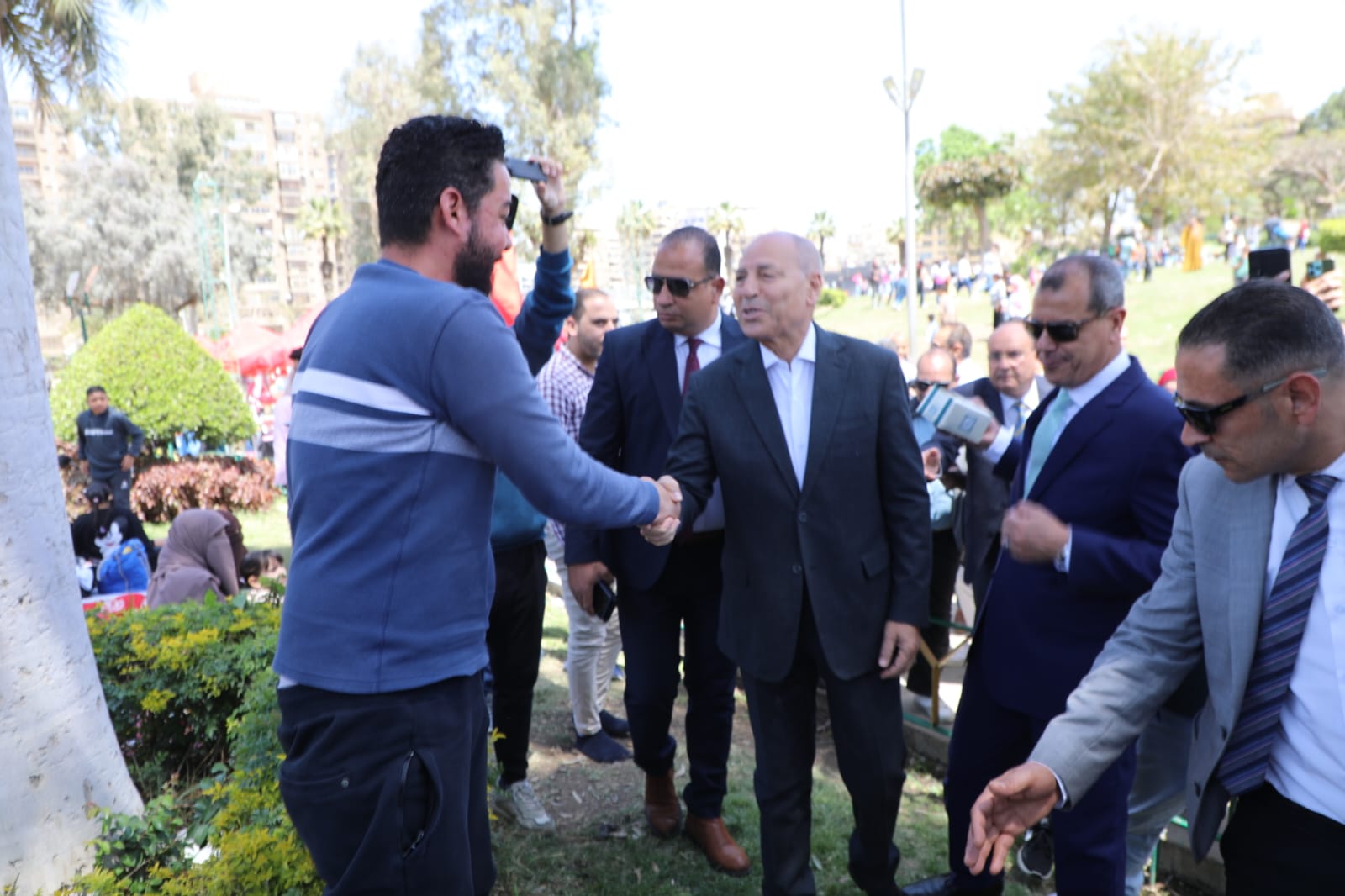 محافظ القاهرة يشارك المواطنين إحتفالهم بشم النسيم بالحديقة الدولية ويقوم بتوزيع الورود والحلوى والألعاب على الأطفال المتواجدين