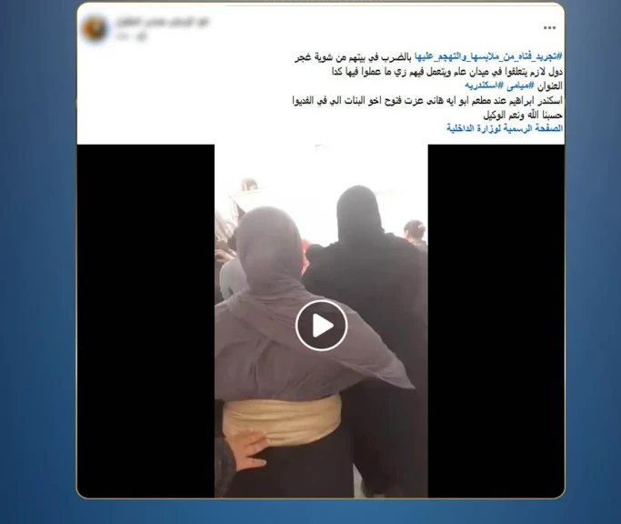 بالنسبة لمقطع فيديو تم تداوله بمواقع التواصل الإجتماعى تضمن قيام عدد من السيدات بالتعدى بالضرب على فتاة ومحاولة نزع ملابسها والزعم بكون الواقعة بأحد المنازل بالإسكندرية.