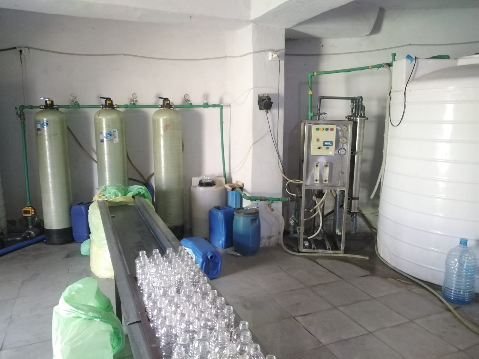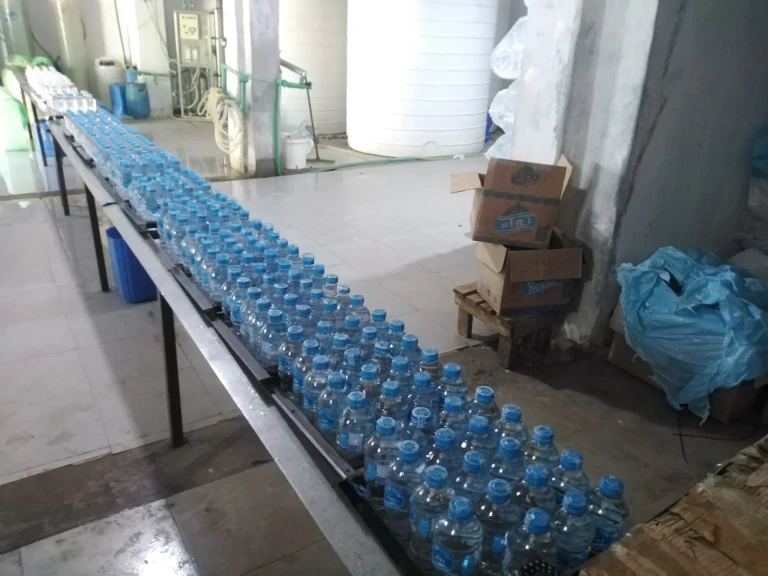 (بإجمالي 6000 زجاجة سعة 600 مللي للزجاجة الواحدة) و3 خزانات مياه معدنية معدة للتعبئة(زنة الخزان الواحد 5 طن – بإجمالي 15 طن مياه مجهولة المصدر) وخط إنتاج وتحلية كامل يشمل: