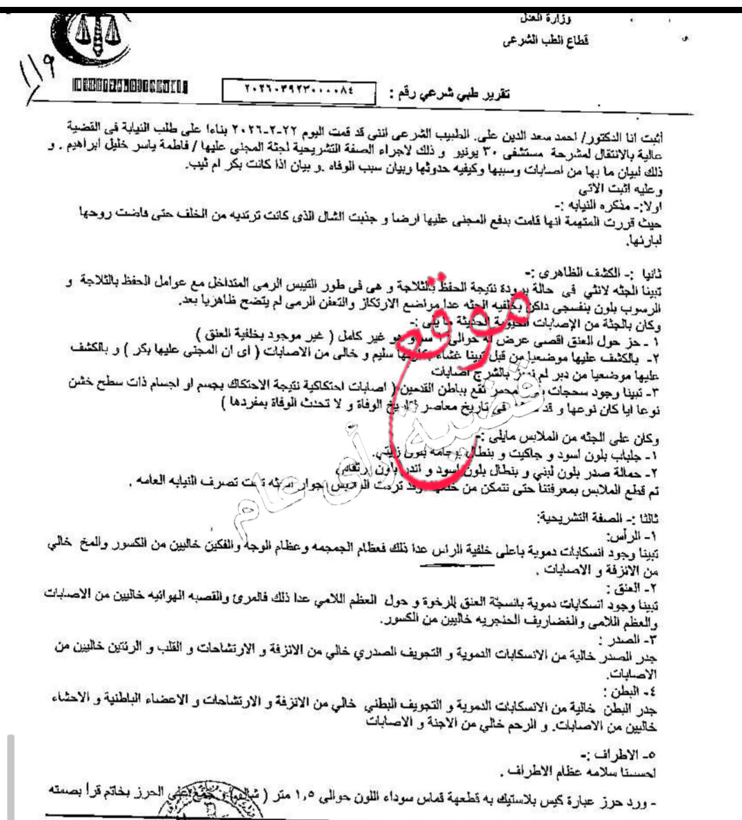 ننشر نص تقرير الطب الشرعى لـ فاطمة عروس بورسعيد