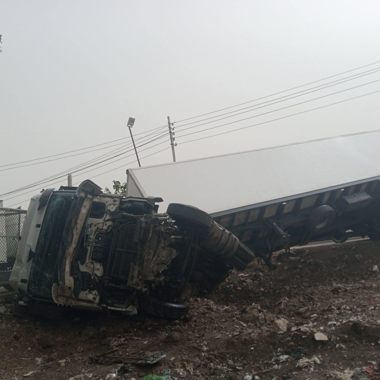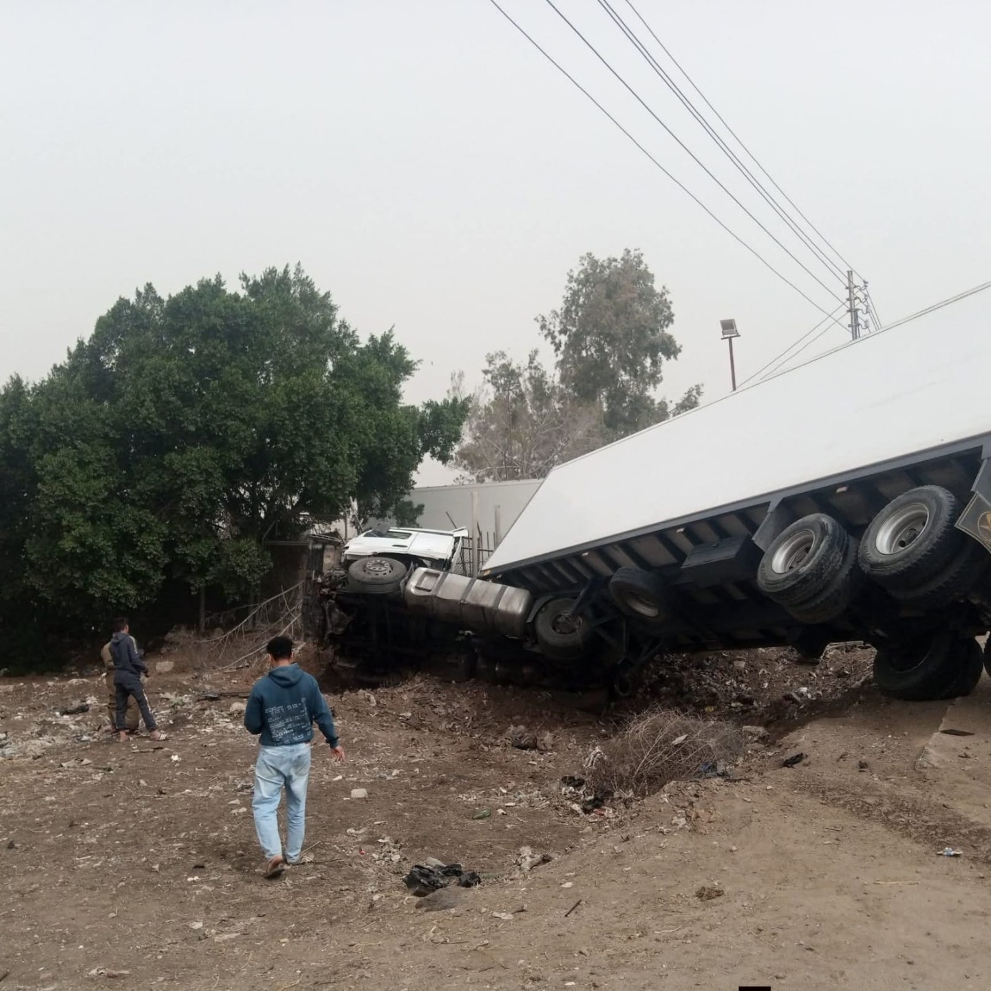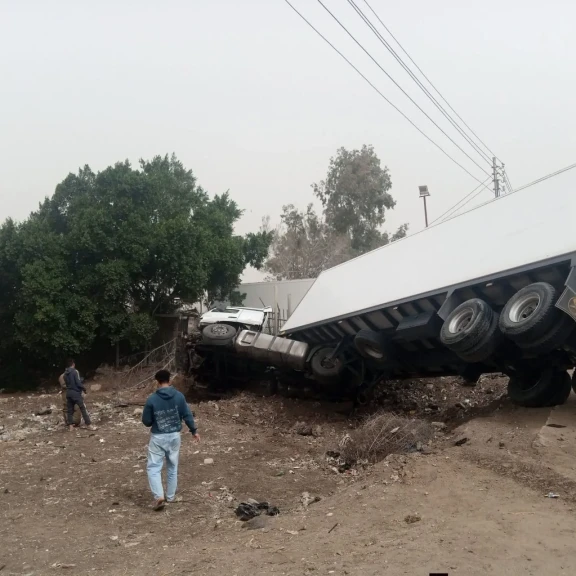 شاهد ..انقلاب سيارة تريلا بطريق طنطا ـ كفر الشيخ بمدخل قطور بسبب السرعه الزائده