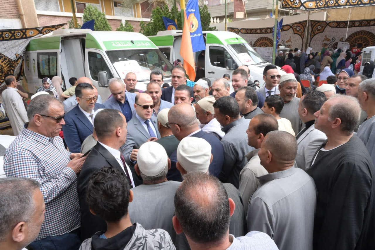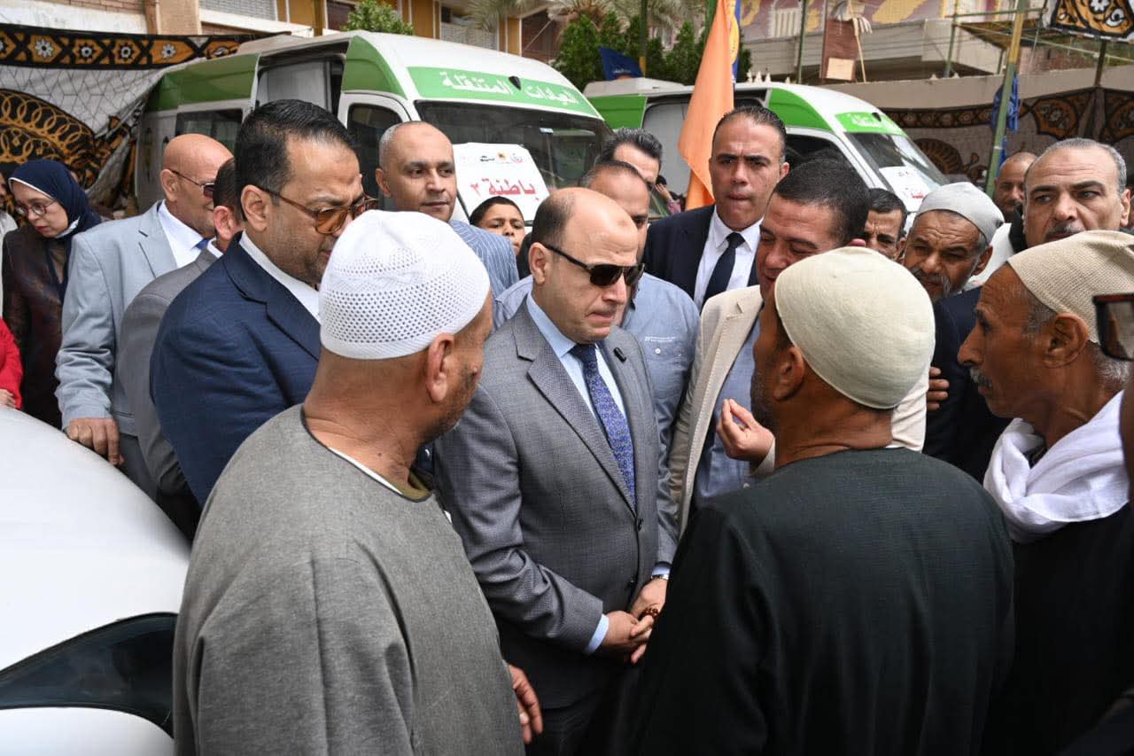 وخلال جولته، تابع المحافظ سير العمل داخل القافلة التي تضم 14 عيادة متنقلة في تخصصات الباطنة والصدر وعيادتين للأطفال والجلدية والجراحة والأسنان والأنف والأذن والعظام والرمد ونساء وتنظيم الأسرة، بما يضمن تقديم خدمة طبية شاملة ومتكاملة لأهالي القرية، كما اطمأن على توافر التجهيزات الطبية اللازمة، والتي تشمل معملًا للتحاليل ووحدة أشعة وصيدلية لصرف العلاج بالمجان، إلى جانب تحويل الحالات التي تحتاج إلى تدخلات متقدمة إلى المستشفيات، مع متابعتها بشكل مستمر من خلال فرق خدمة المواطنين، والتي نجحت حتى الآن في تقديم خدماتها الطبية لأكثر من 2000 مستفيد من أهالي القرية والمناطق المجاورة، وذلك وسط إقبال ملحوظ من المواطنين الذين حرصوا على التواجد والاستفادة من القافلة طوال يومي انعقادها.