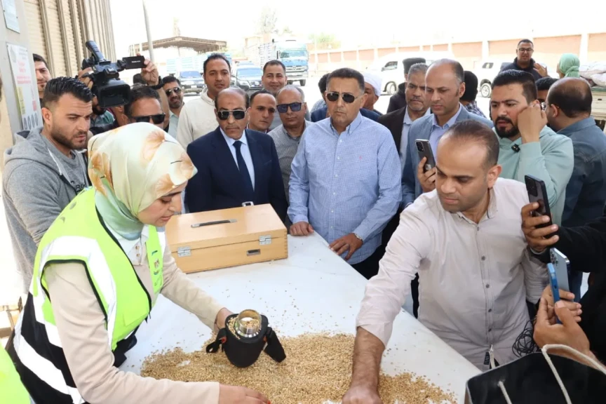 وخلال التفقد، استمع المحافظ لشرح دورة العمل بدءًا من دخول السيارات وسحب العينات وقياس نسبة الرطوبة وتحديد درجة النقاوة عبر لجان متخصصة، موجهاً بسرعة إنهاء الإجراءات لمنع التكدس، مع الالتزام بصرف مستحقات المزارعين خلال 48 ساعة كحد أقصى، والتأكد من تطبيق أعلى معايير السلامة والجودة في التخزين.