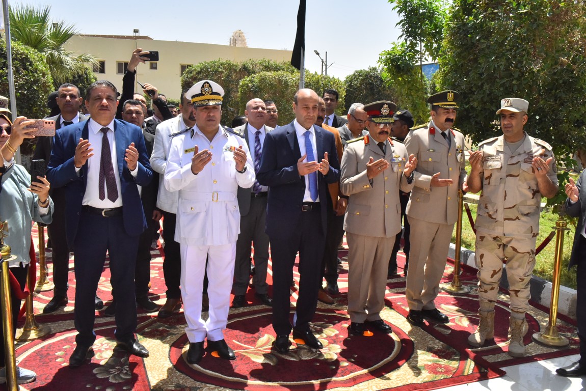 محافظ أسيوط يضع إكليلًا من الزهور على النصب التذكاري لشهداء بني عدي بمشاركة قيادات عسكرية وأمنية احتفالًا بالعيد القومي