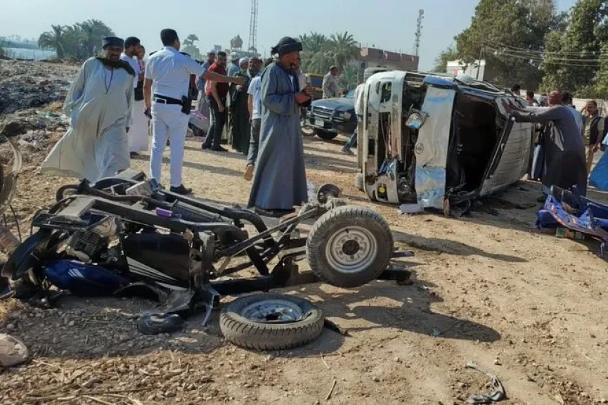مصرع شخصين وإصابة 12 آخرين فى حادث تصادم سيارة ميكروباص وتروسيكل بأسيوط