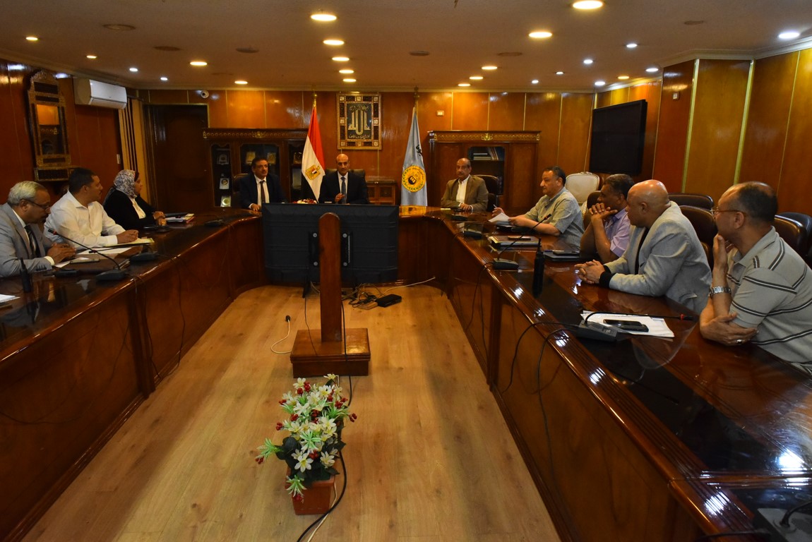 جاء ذلك خلال اجتماع المحافظ برؤساء المراكز والأحياء بديوان عام المحافظة، بحضور المحاسب عدلي أبو عقيل السكرتير العام للمحافظة، والأستاذ خالد عبد الرؤوف السكرتير العام المساعد، إلى جانب رؤساء المراكز والأحياء، وعلي عبد الله مدير مركز المعلومات واتخاذ القرار بديوان عام المحافظة والمشرف على المراكز التكنولوجية، ومحمد جمال مدير منظومة تقنين أراضي أملاك الدولة الإلكترونية بالمحافظة.
