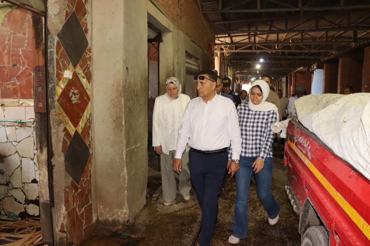 واستهل المحافظ جولته بتفقد سوق المنيل للخضار والفاكهة بحي غرب، موجهاً باستكمال أعمال التطوير الجارية، وإعادة تأهيل السوق بما يضمن تحويله إلى سوق حضاري منظم يليق بالمواطنين والتجار، مع الالتزام بتوفير بيئة نظيفة وآمنة وتنظيم حركة الدخول والخروج داخله، ورفع أي إشغالات تعوق الحركة، بما يسهم في تحسين مستوى الخدمات المقدمة.