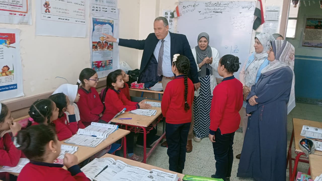 حيث تابع وكيل الوزارة - خلال زيارته لمدرسة جمال عبد الناصر للتعليم الاساسى - البالغ عدد فصولها 26 فصل دراسى لمراحل رياض الاطفال والابتدائية والاعدادية ، بعض الحصص الدراسية وتابع مدى الالتزام بتطبيق لائحة الانضباط المدرسى مشددا على ضرورة الحصر الجيد لاعداد الطلاب الضعاف فى المواد الدراسية وخاصة فى القراءة والكتابة وتفعيل البرامج العلاجية بمشاركة المعلمين والاخصائين كما وجه بضرورة الالتزام بخطة المناهج الدراسية ومطابقتها بالخطة الزمنية والاهتمام بسجلات الدرجات والتقييمات الاسبوعية والاداءات الصفية والسلوك والمواظبة للطلاب أول بأول .